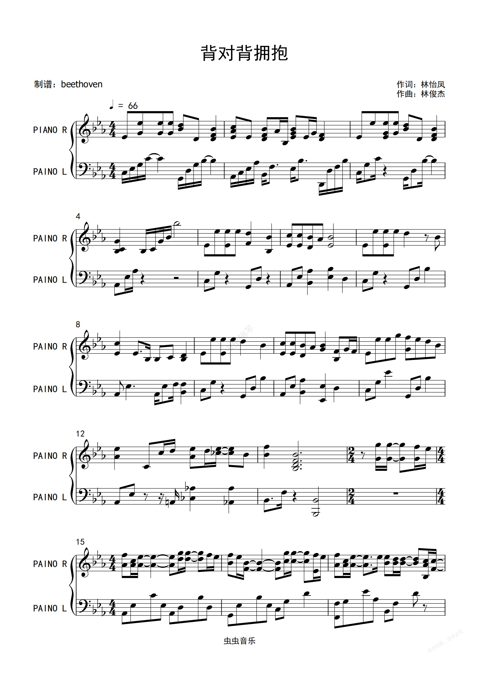 钢琴谱:背对背拥抱(完美原版)_林俊杰