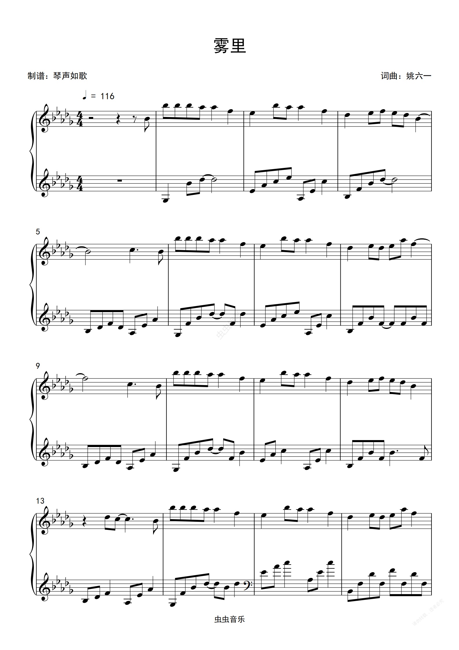 钢琴谱:雾里- 天谕系列 好听易弹