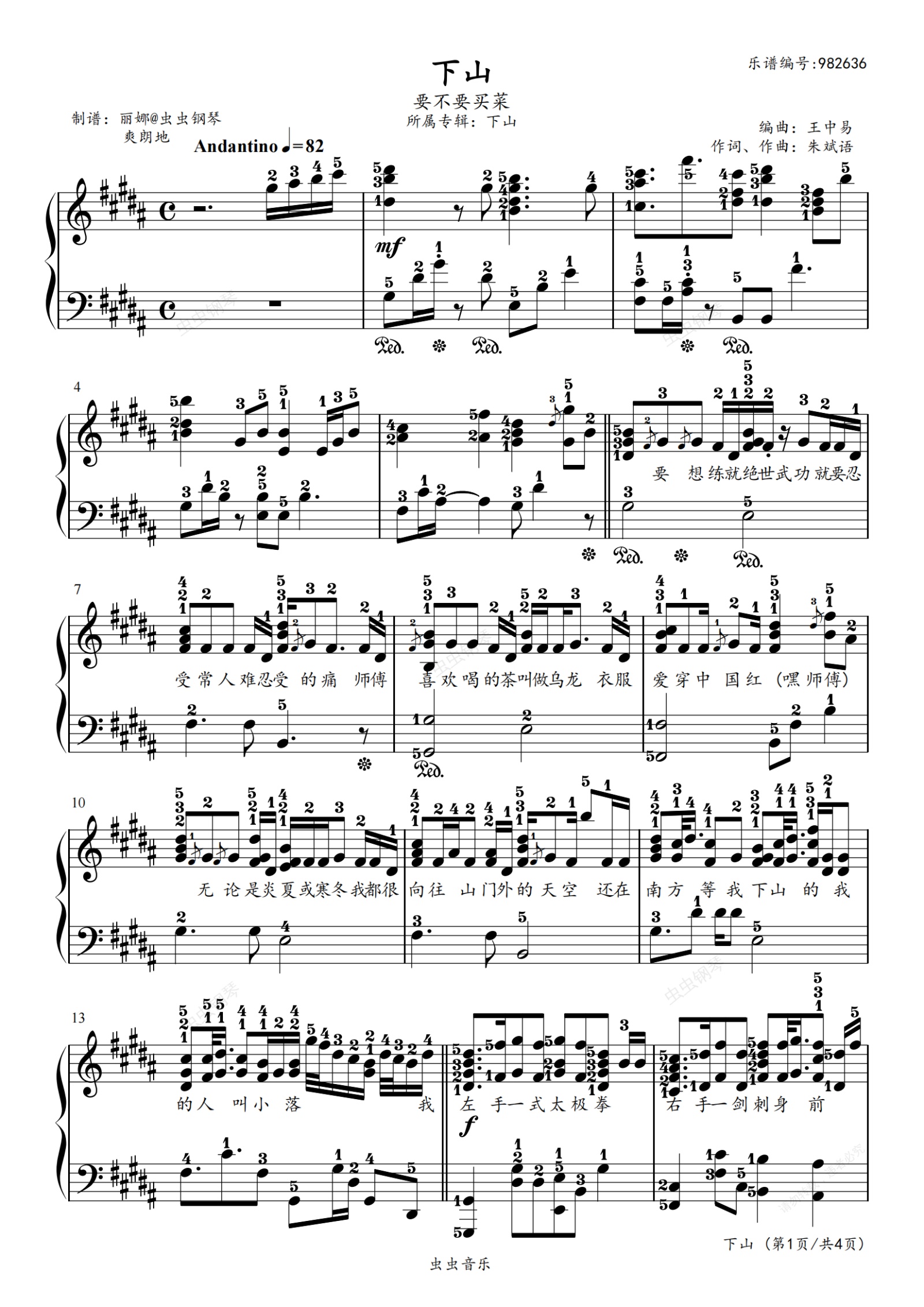 钢琴谱:下山