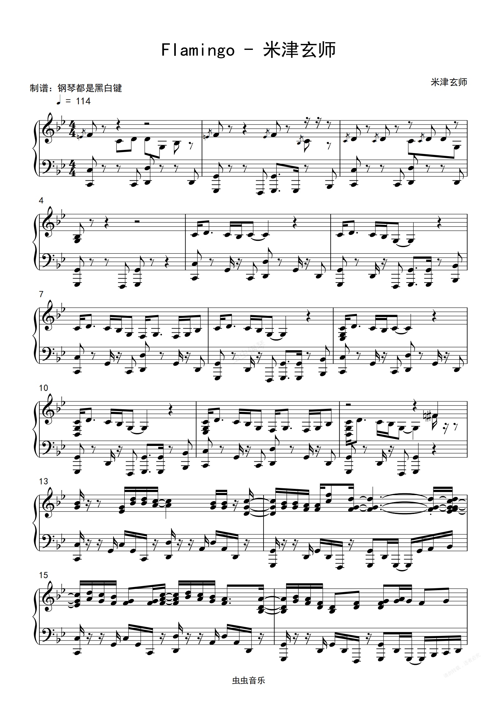 钢琴谱:Flamingo - 米津玄师 【超好听钢琴独奏曲】