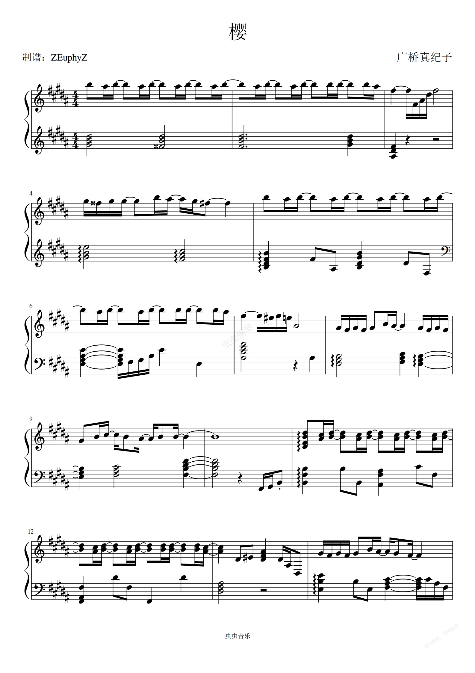钢琴谱:広桥真纪子《桜》