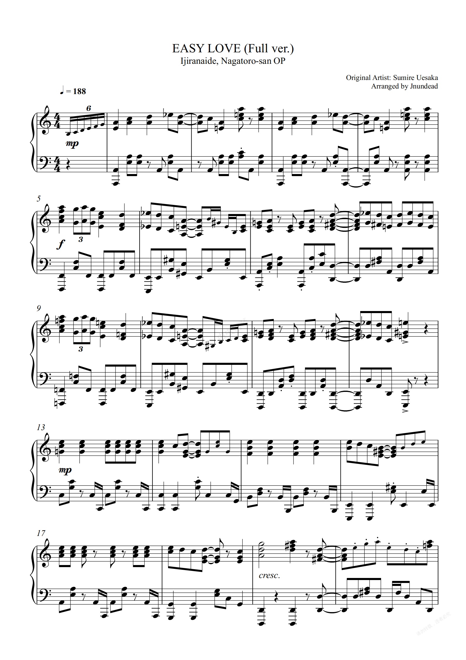 钢琴谱:Easy Love -超燃钢琴独奏 【免费谱】