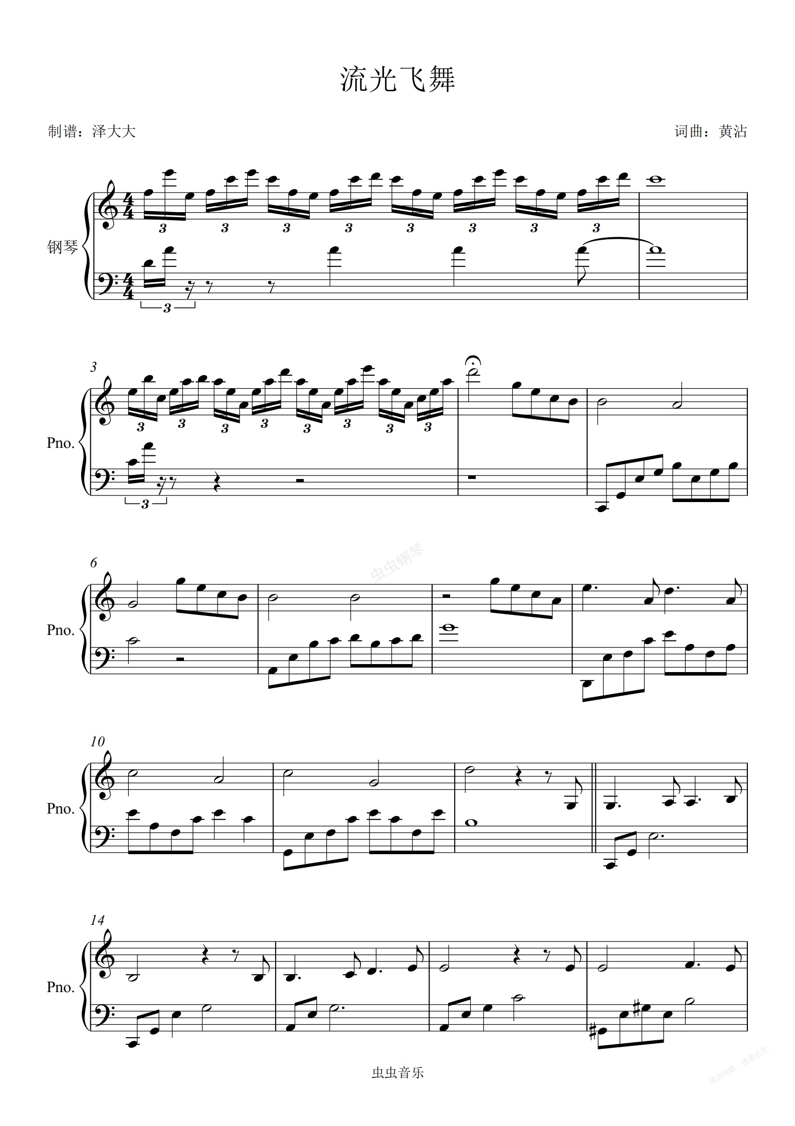 钢琴谱:流光飞舞【刘惜君版完美独奏】泽大大