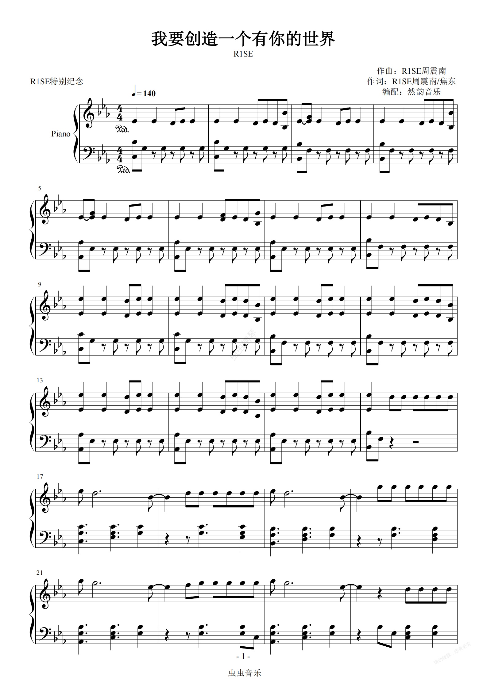 钢琴谱:R1SE-我要创造一个有你的世界 钢琴完美还原