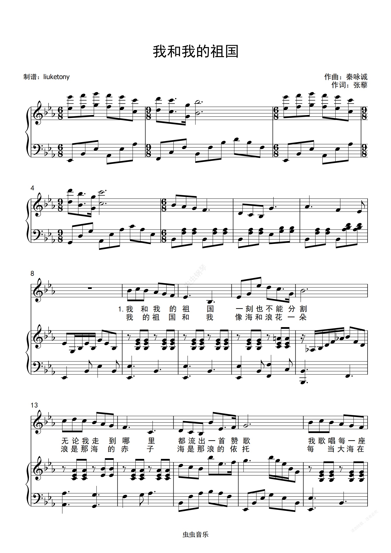 钢琴谱:我和我的祖国 全民合唱版 bE钢琴伴奏版