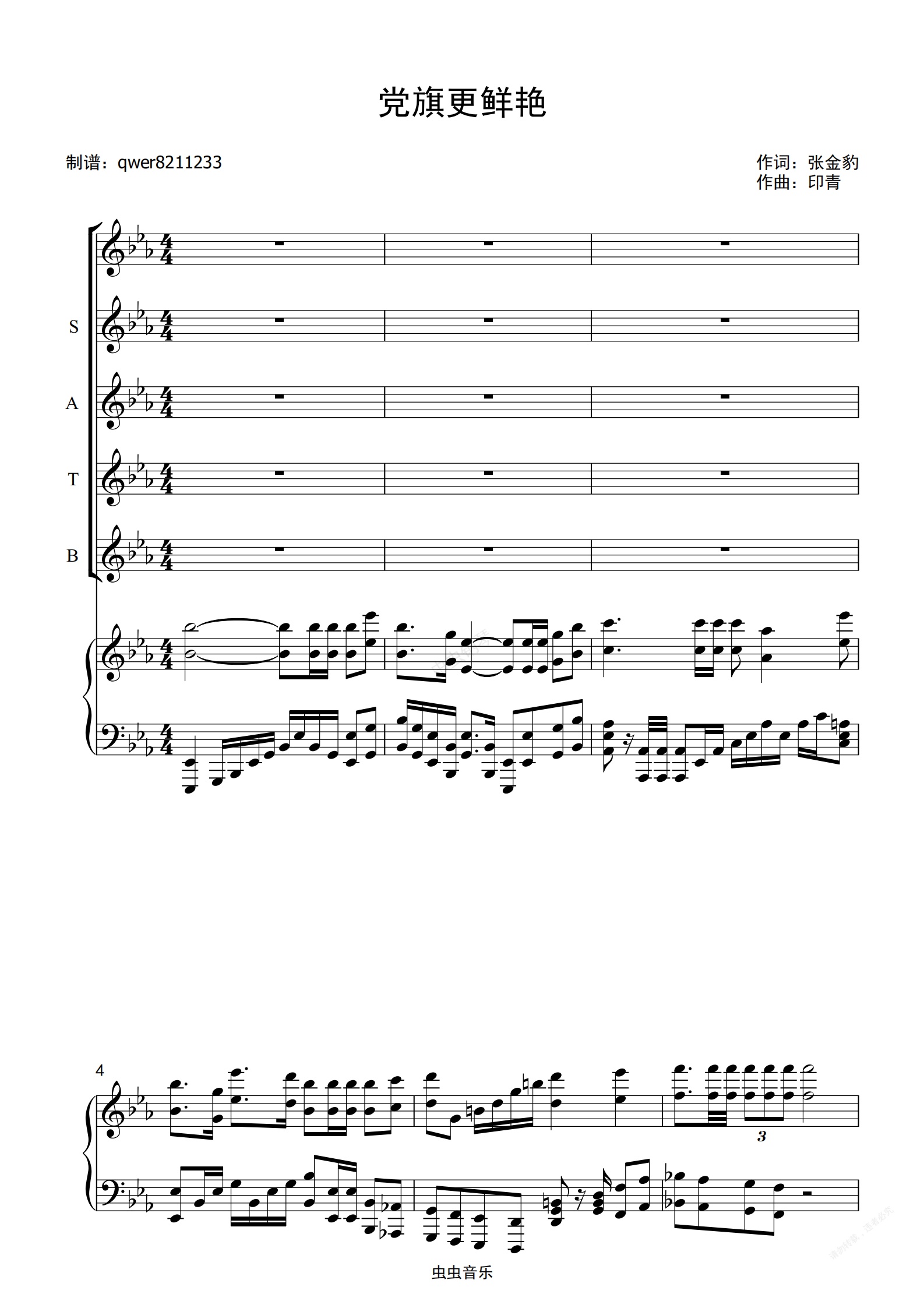 钢琴谱:党旗更鲜艳(合唱正谱)