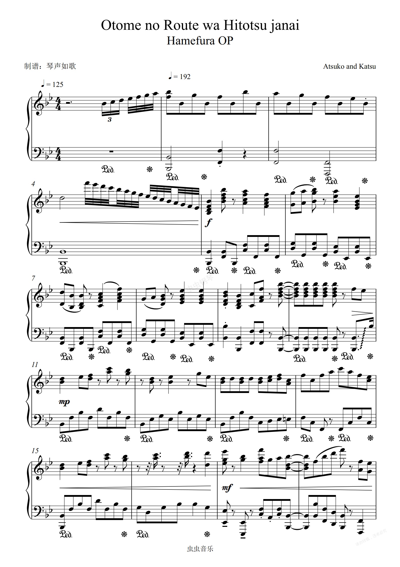 钢琴谱:【Hamefura OP】-Otome no Route wa Hitotsu janai