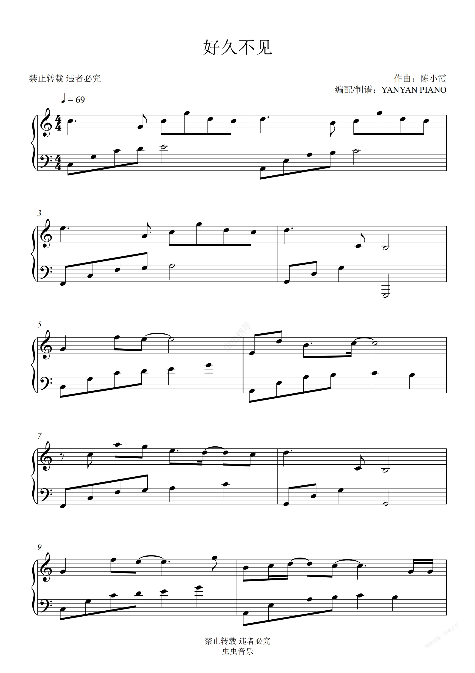 钢琴谱:陈奕迅【好久不见】
