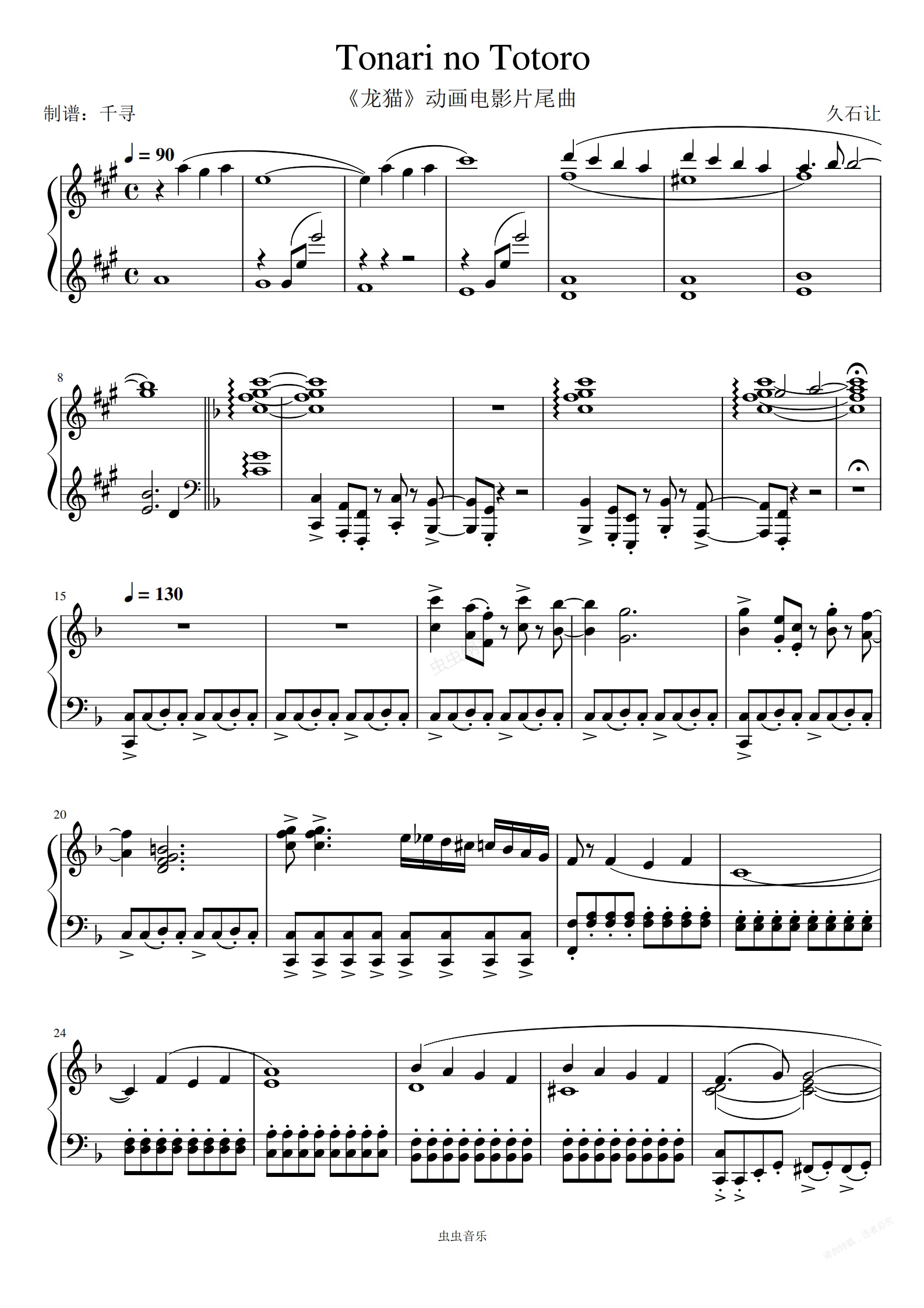 钢琴谱:Tonari no Totoro(《龙猫》动画电影片尾曲)