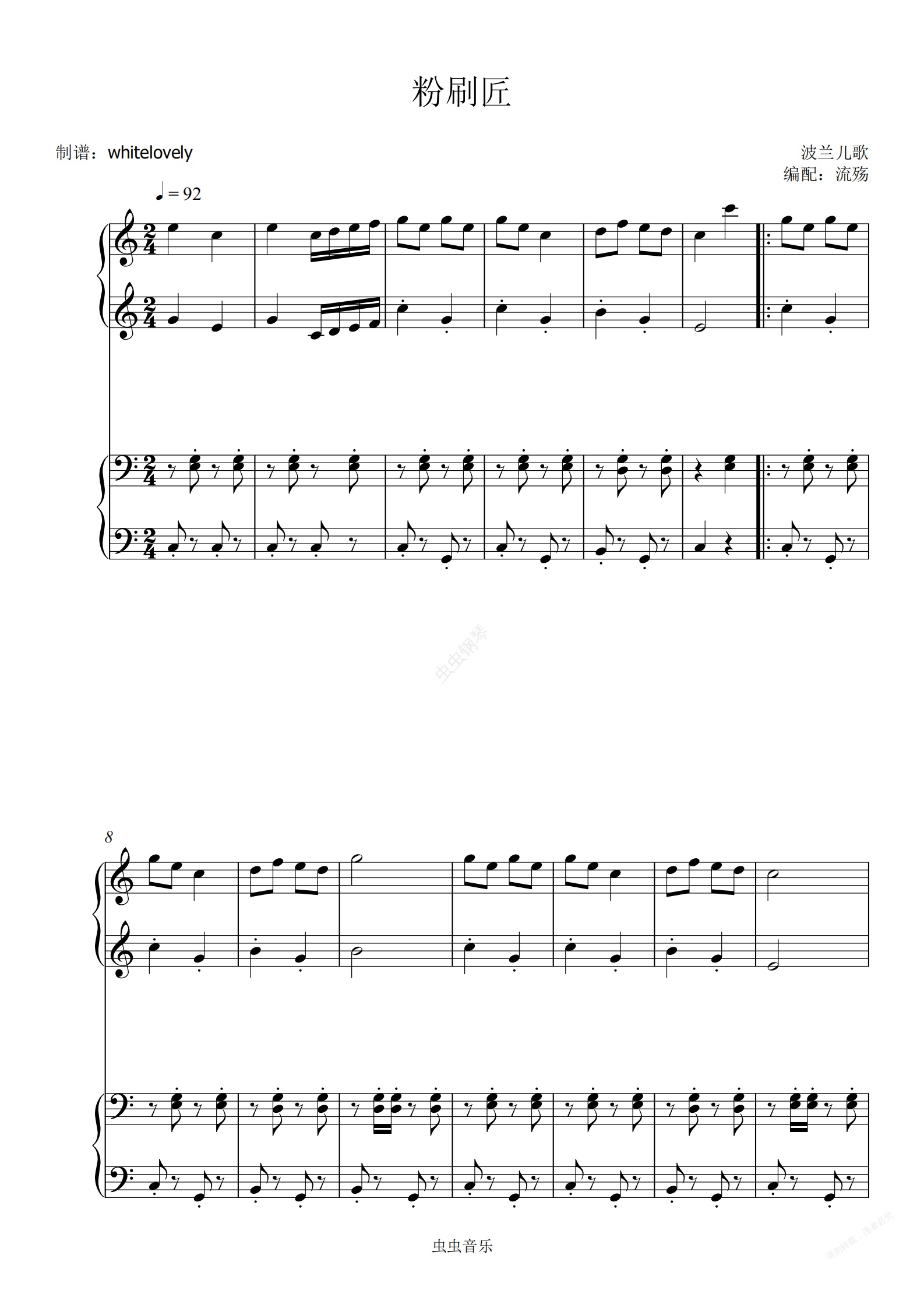 钢琴谱:粉刷匠 C调四手联弹