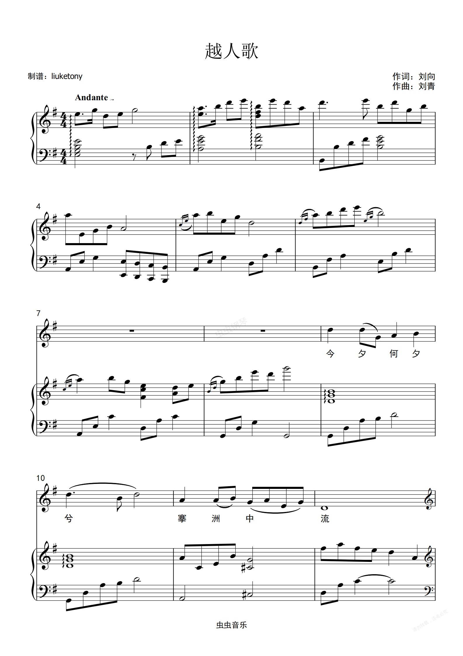 钢琴谱:越人歌 - 宋祖英 钢琴伴奏版