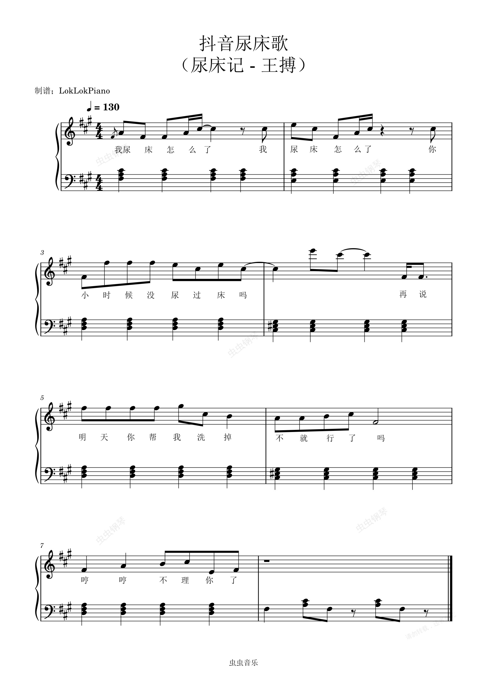 钢琴谱:抖音尿床歌(尿床怎么了)