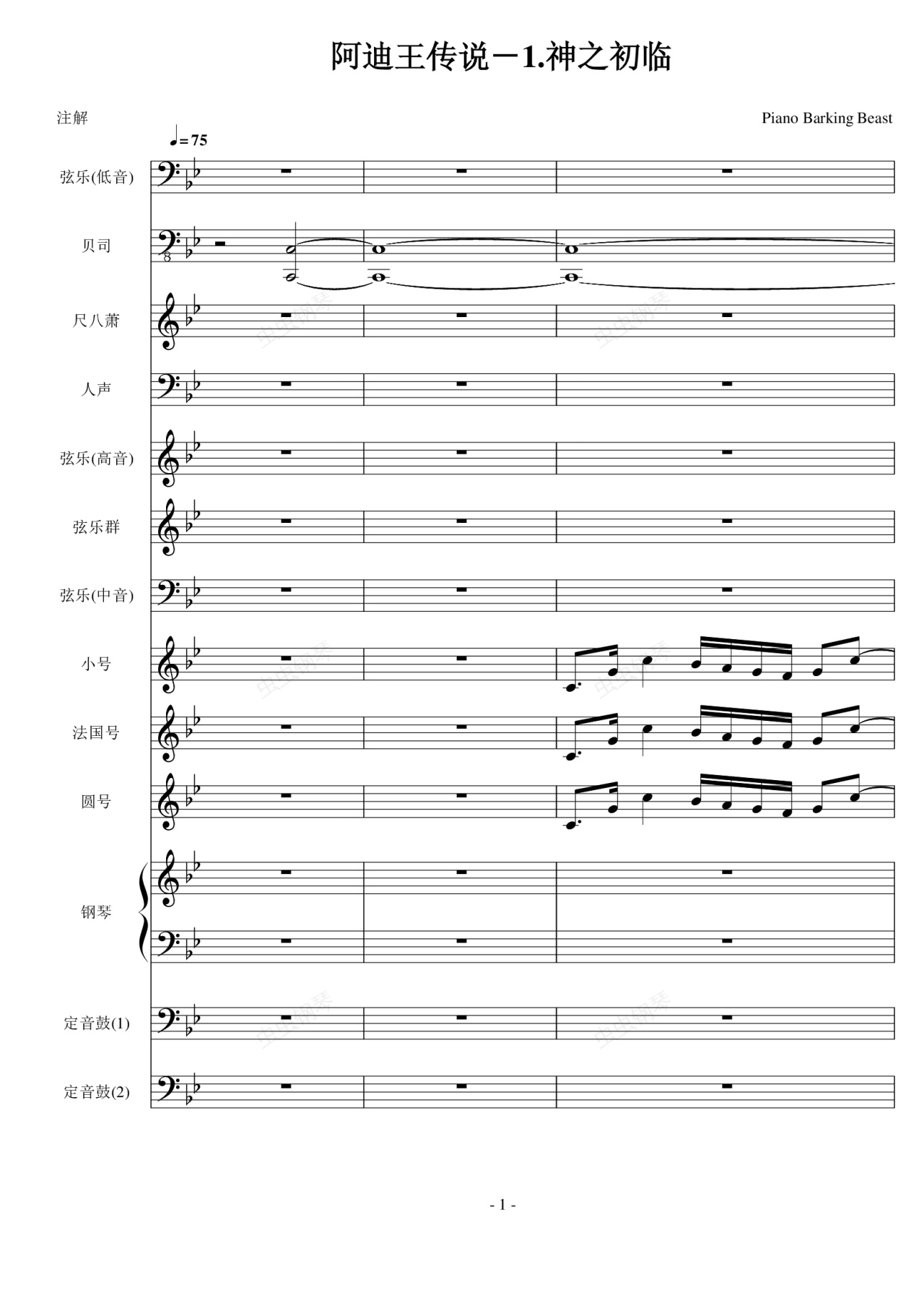 3.这个虽然是管弦乐歌谱,但是因为的音轨限制(最多只能有16条音轨,否则就会卡死),所以没有将弦乐的音轨单独列出,而是将其合在一起。本来我是很注重演奏性的,现在一个重大问题是现实条件所限,另一个问题是,我想也不会有人会拿这首歌曲来演奏的了。