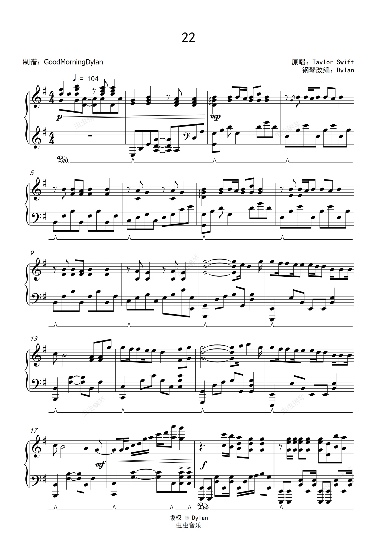 钢琴谱:22-Taylor Swift 钢琴翻奏