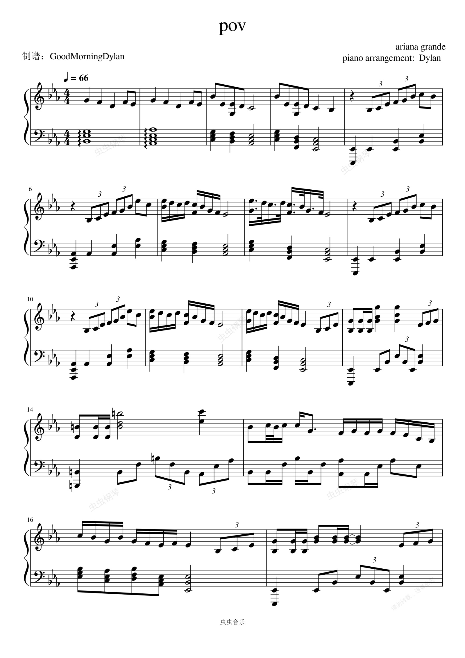 钢琴谱:pov-Ariana Grande 钢琴翻奏