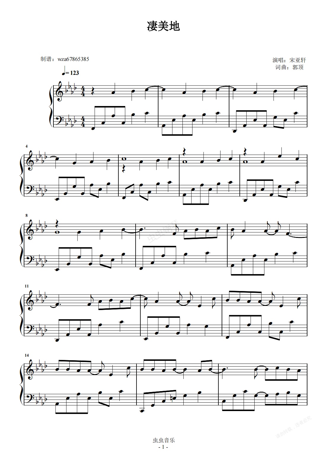 钢琴谱:凄美地