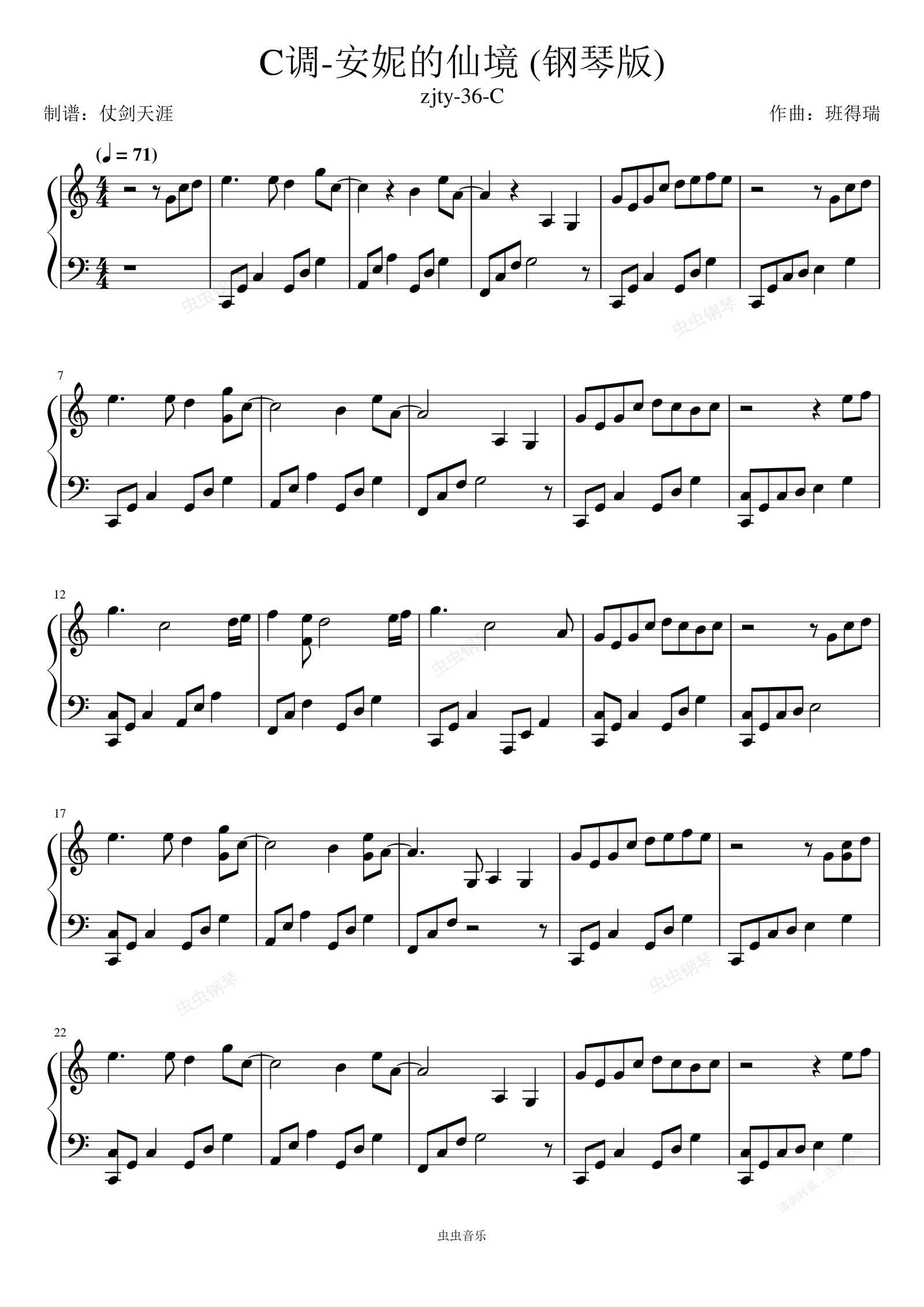 钢琴谱:C调-安妮的仙境 Annie's Wonderland (钢琴版)