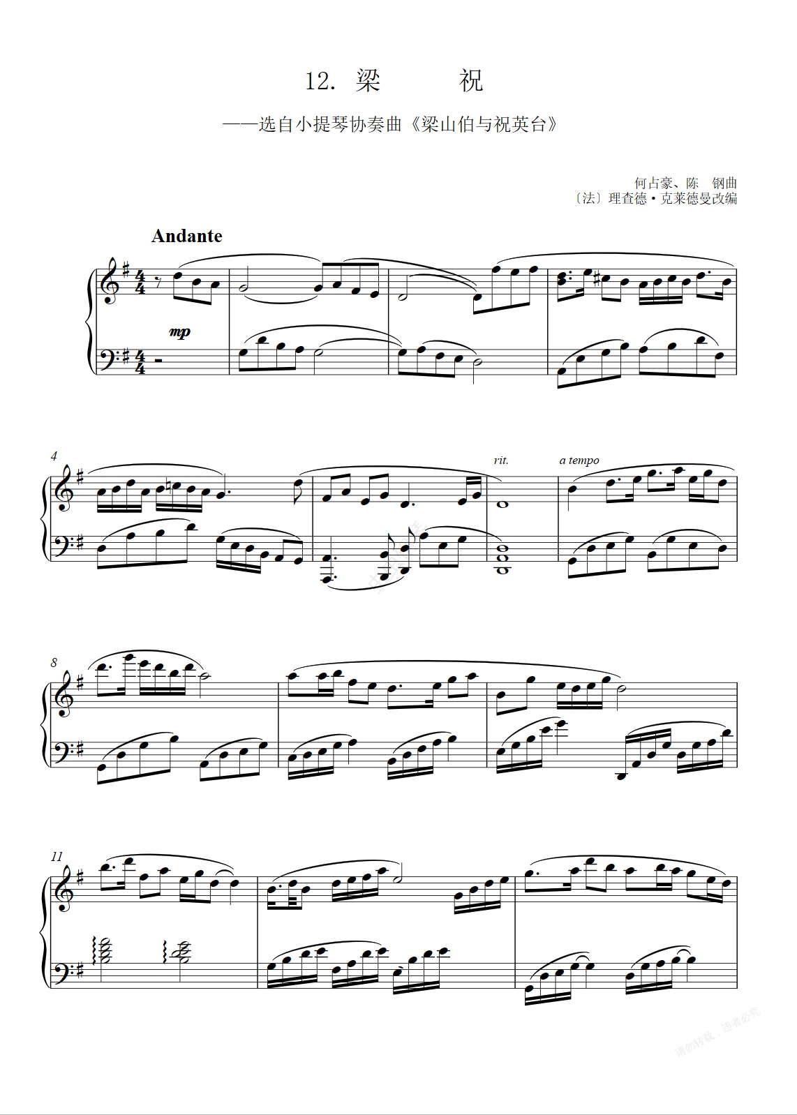 钢琴谱:梁祝——选自小提琴协奏曲《梁山伯与祝英台》