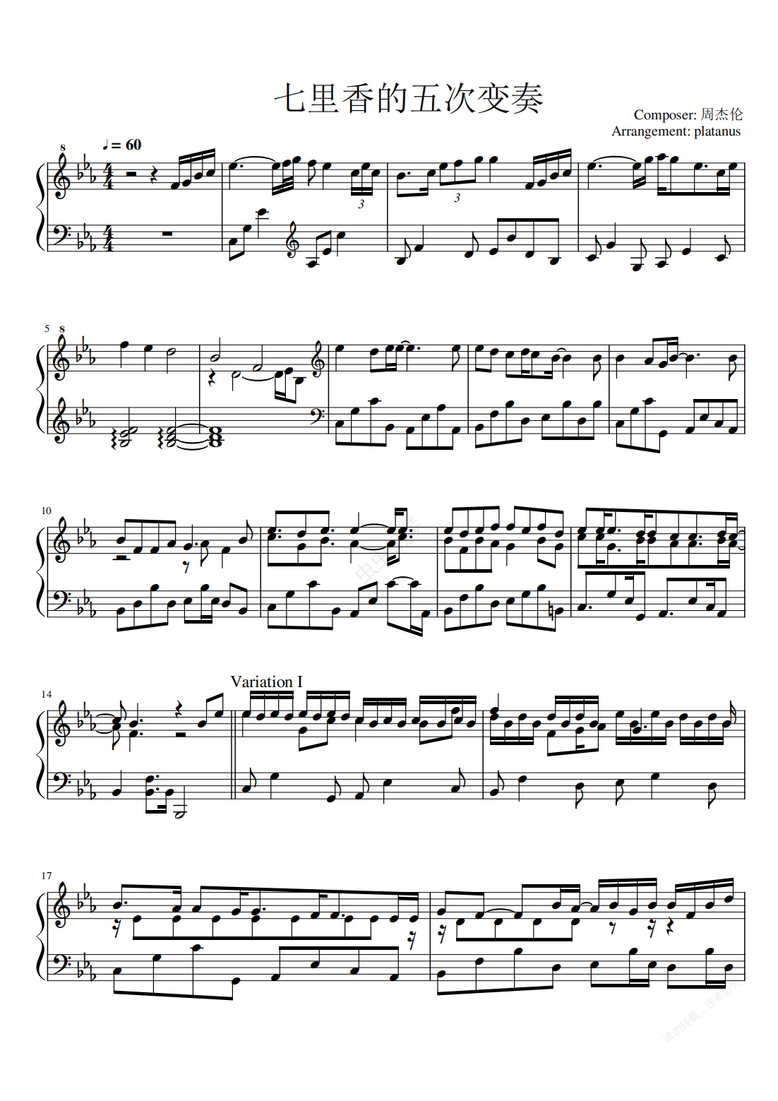钢琴谱:七里香-超好听改编版【免费谱】