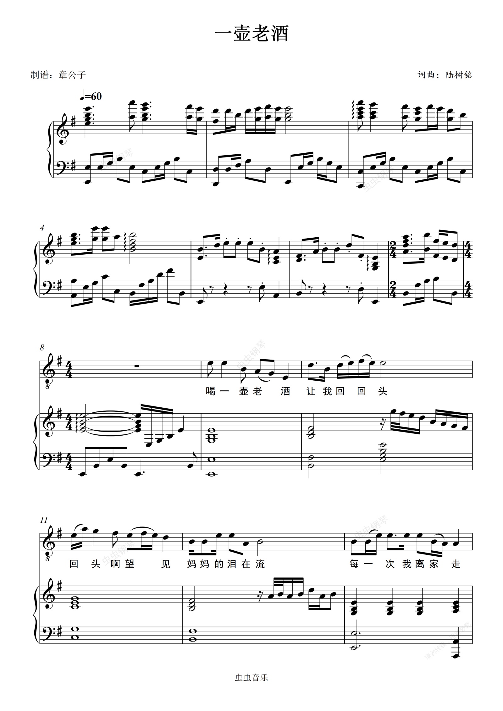 钢琴谱:一壶老酒 - 陆树铭 完美弹唱(伴奏)谱