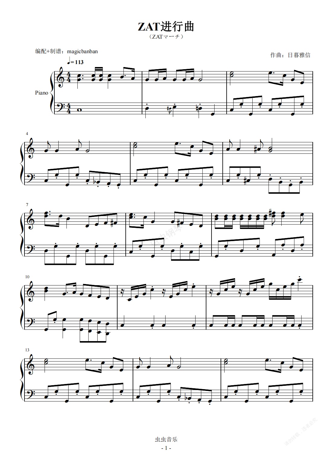 钢琴谱:ZAT进行曲 <泰罗奥特曼>配乐选段