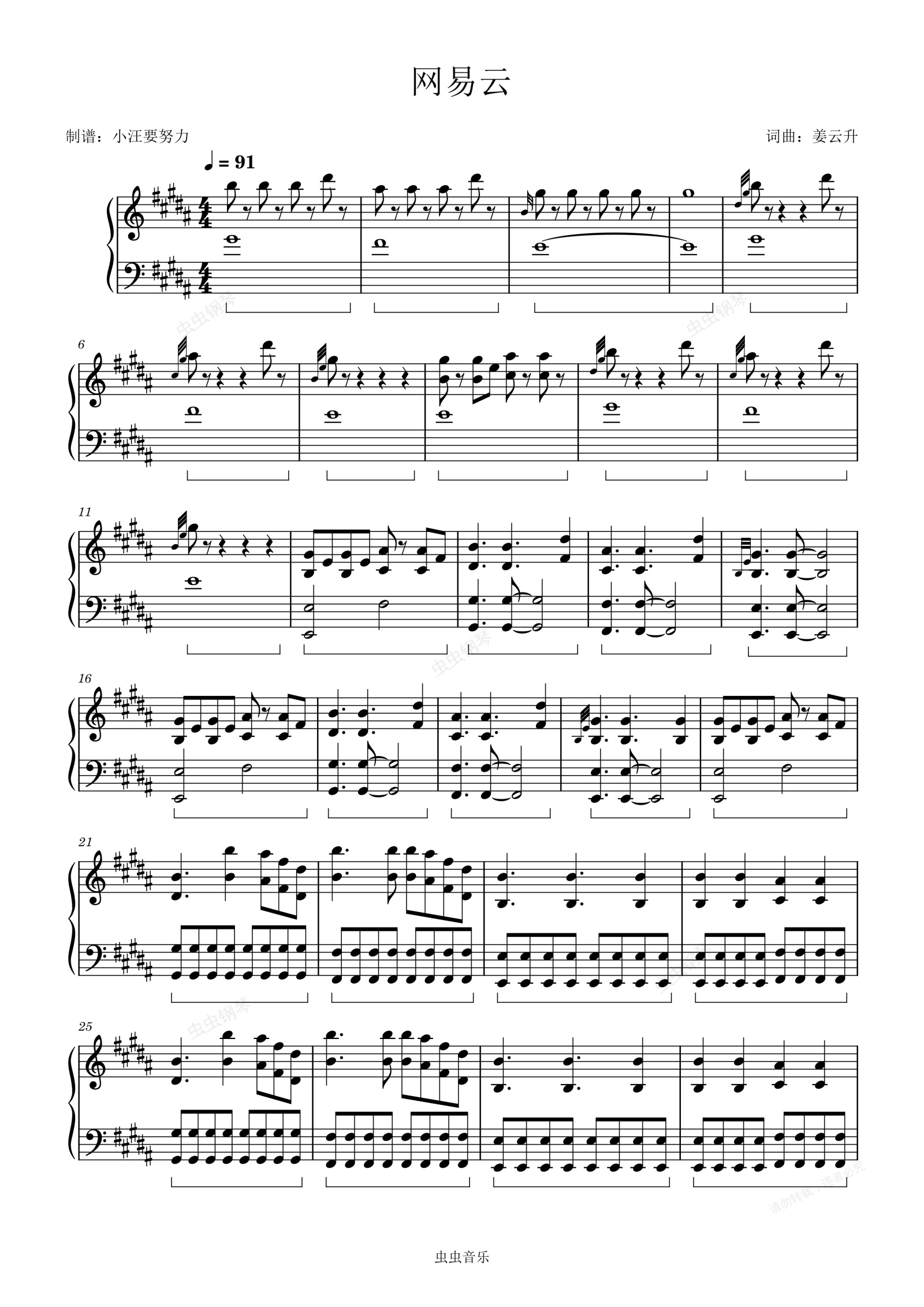 钢琴谱:网易云-姜云升B调原版钢琴谱