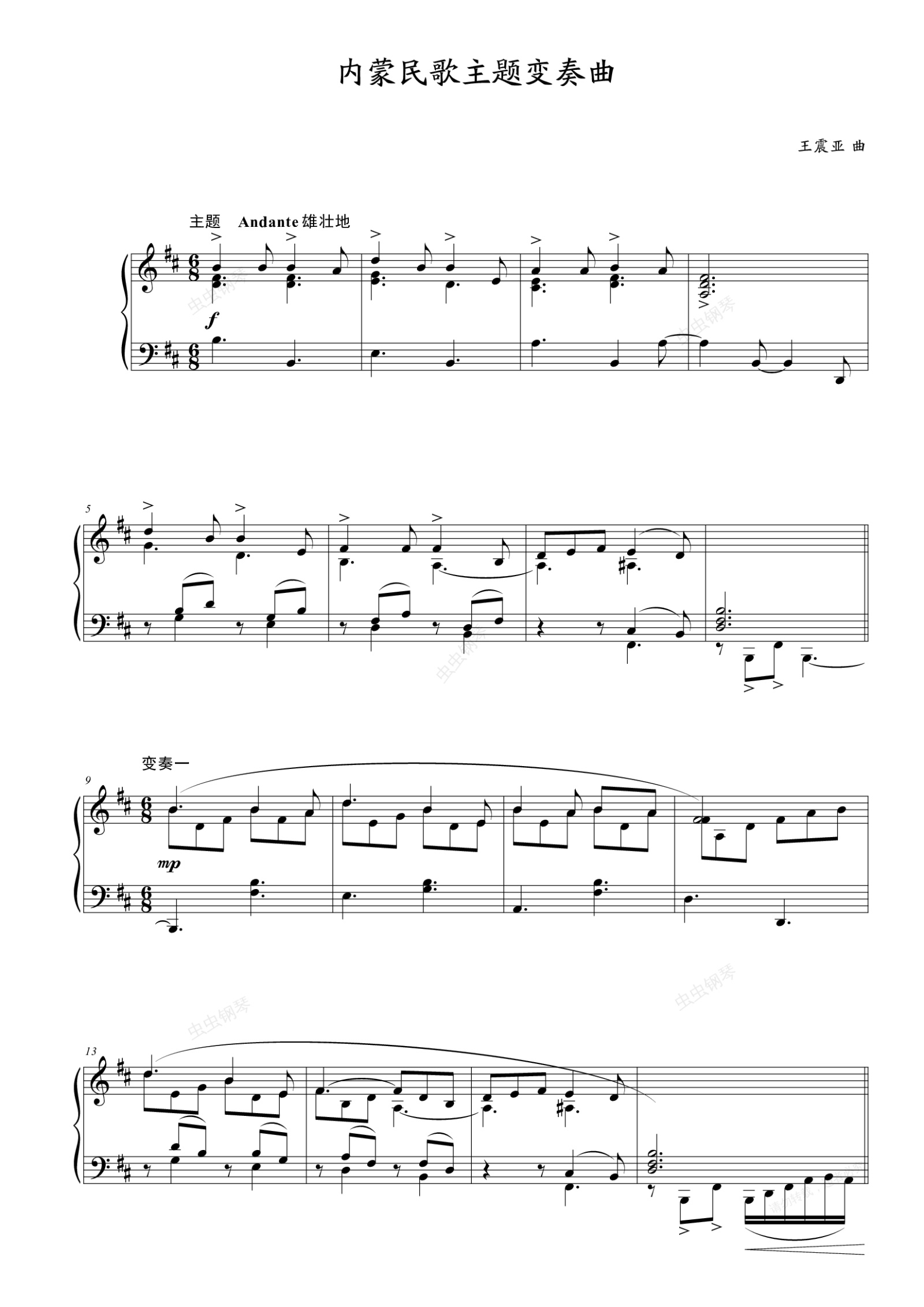 钢琴谱:第六级 内蒙民歌主题变奏曲