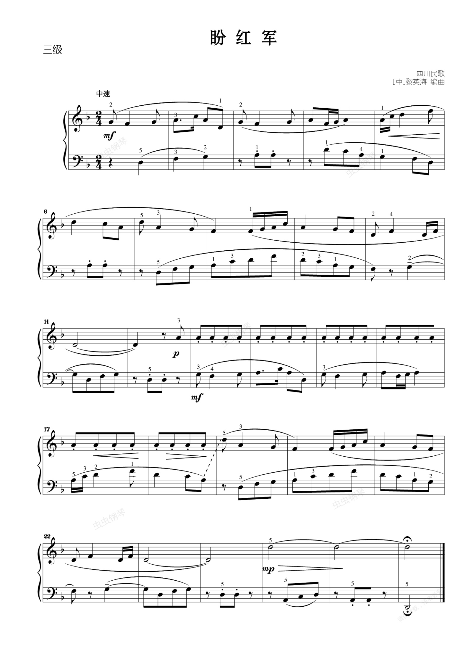 您的位置: 首页 > 钢琴谱库 > 第三级02盼红军