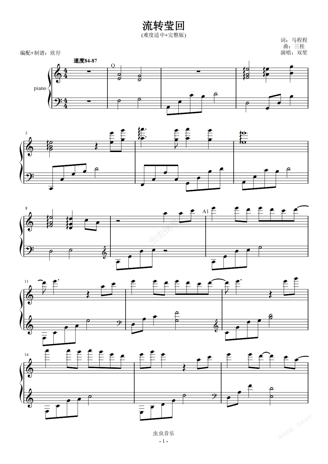 钢琴谱:双笙-C《流转莹回》(《遇龙》片尾曲、难度适中+完整版)