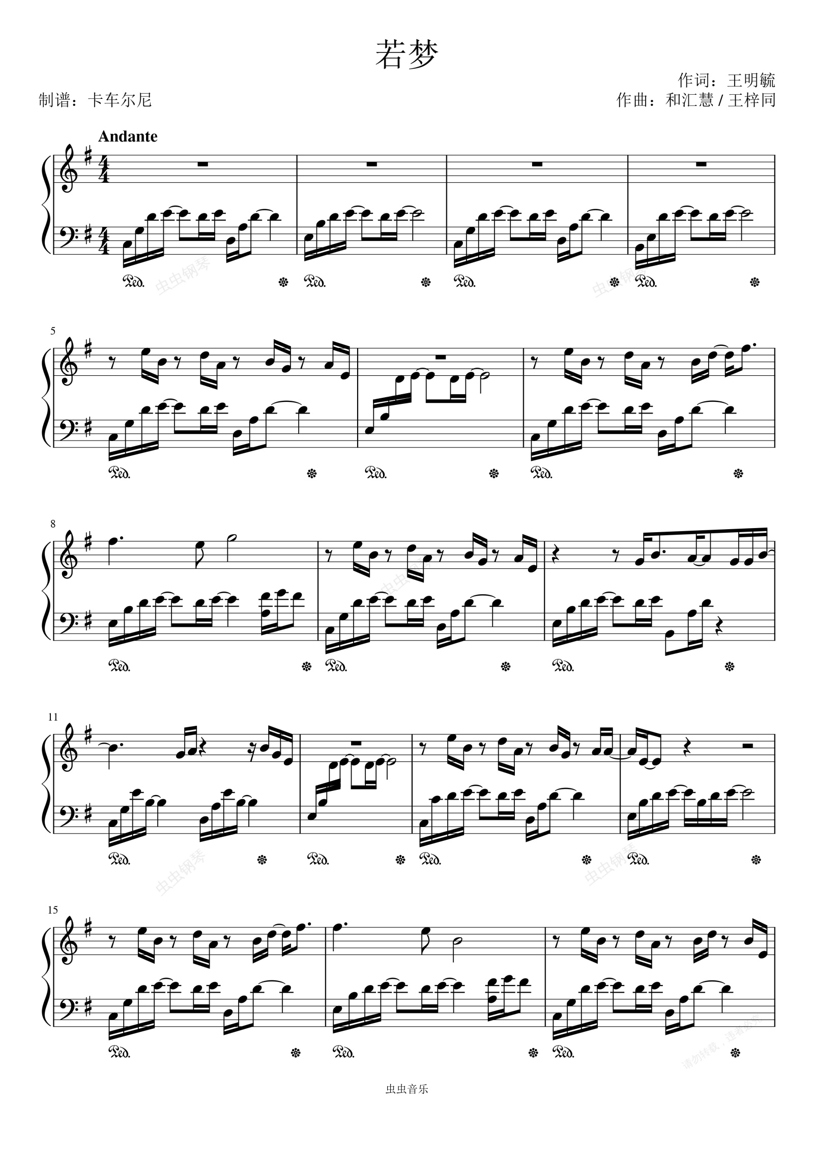 钢琴谱:周深演唱《与君歌》电视剧主题曲 《若梦》 轻松精简版