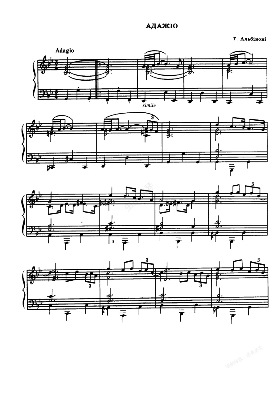 g小调柔板 Adagio in G minor - 钢琴独奏版