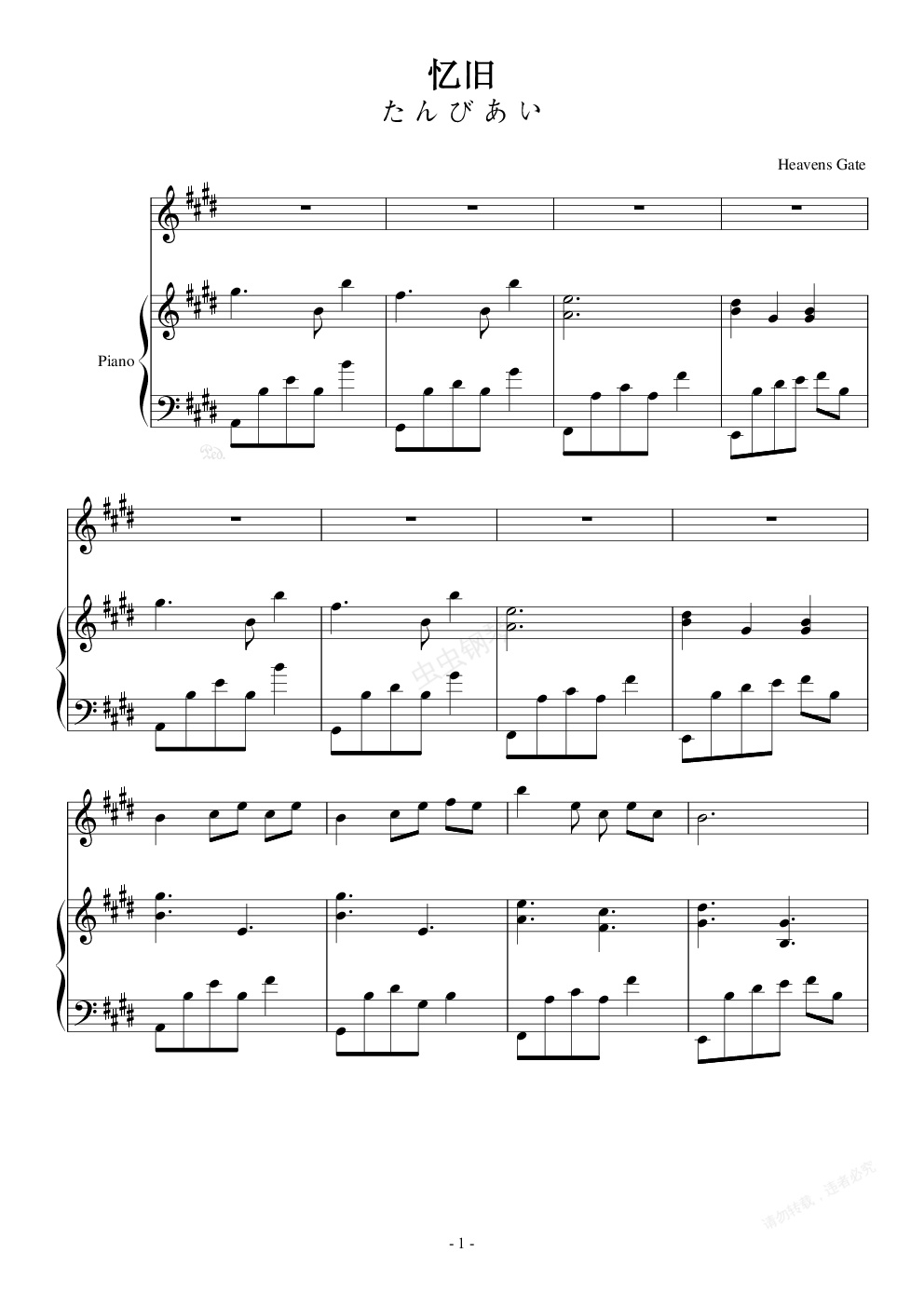 钢琴谱:忆旧