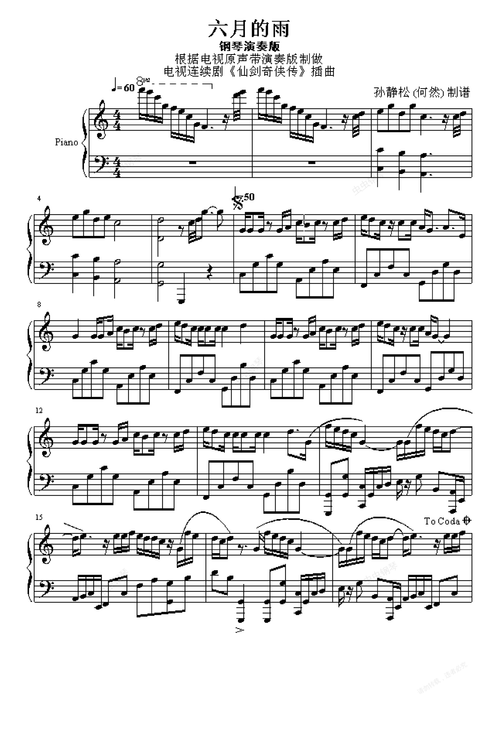 钢琴谱:六月的雨