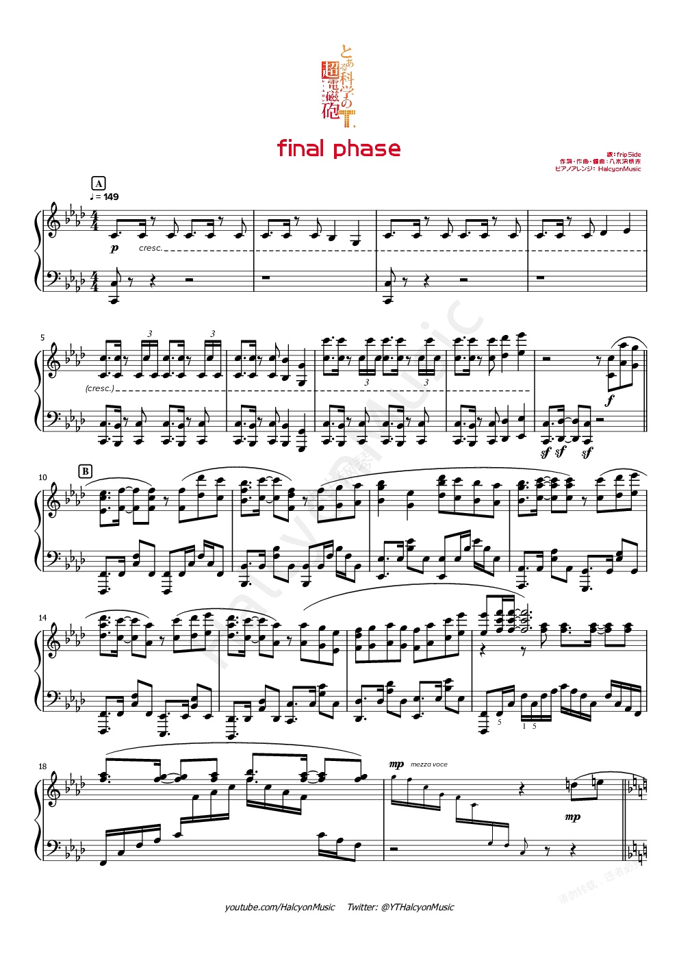 钢琴谱:【HalcyonMusic】Final Phase - To aru kagaku no railgun T OP 某科学的超电磁炮T OP