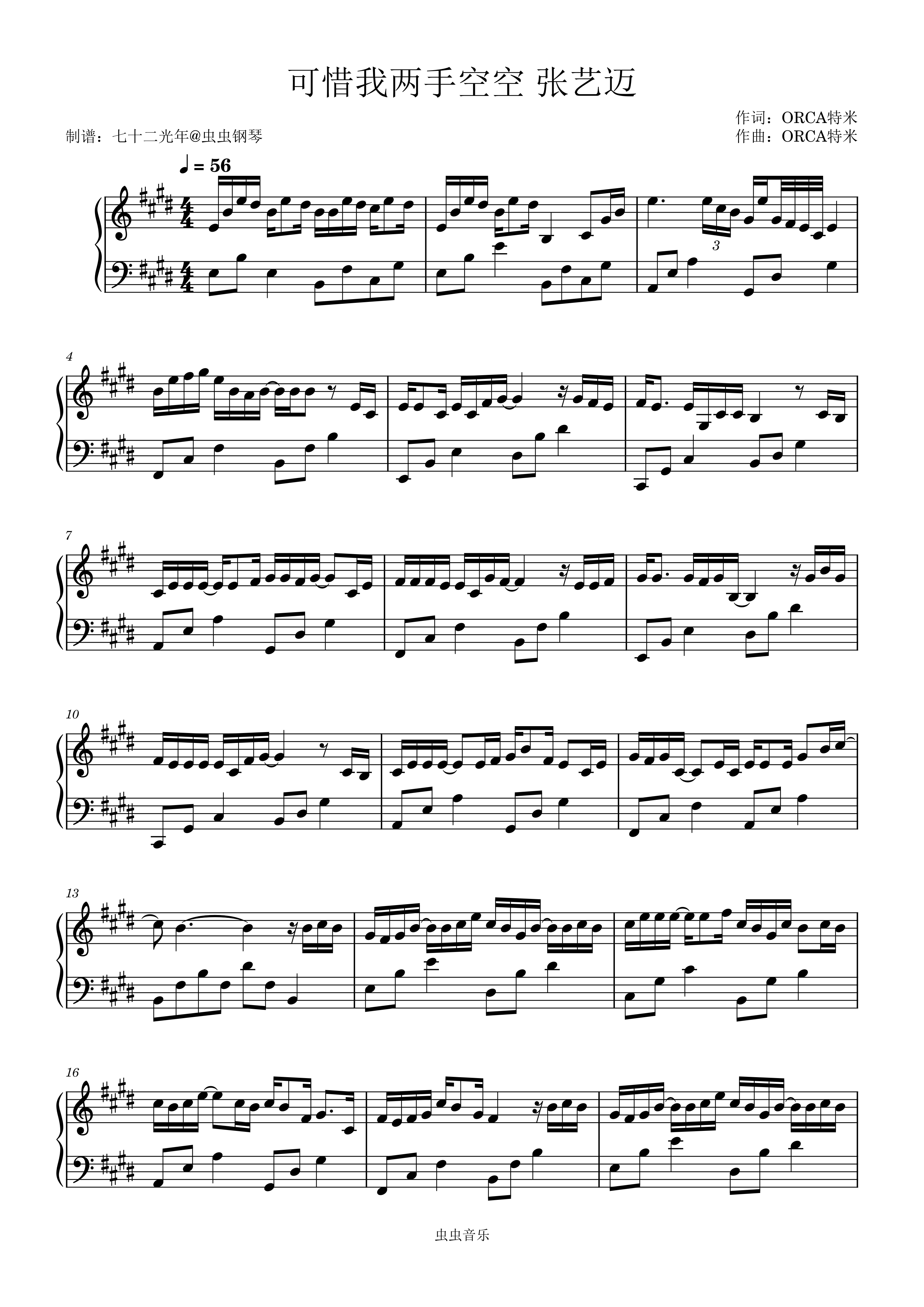 可惜我两手空空钢琴简谱 数字双手 ORCA特米