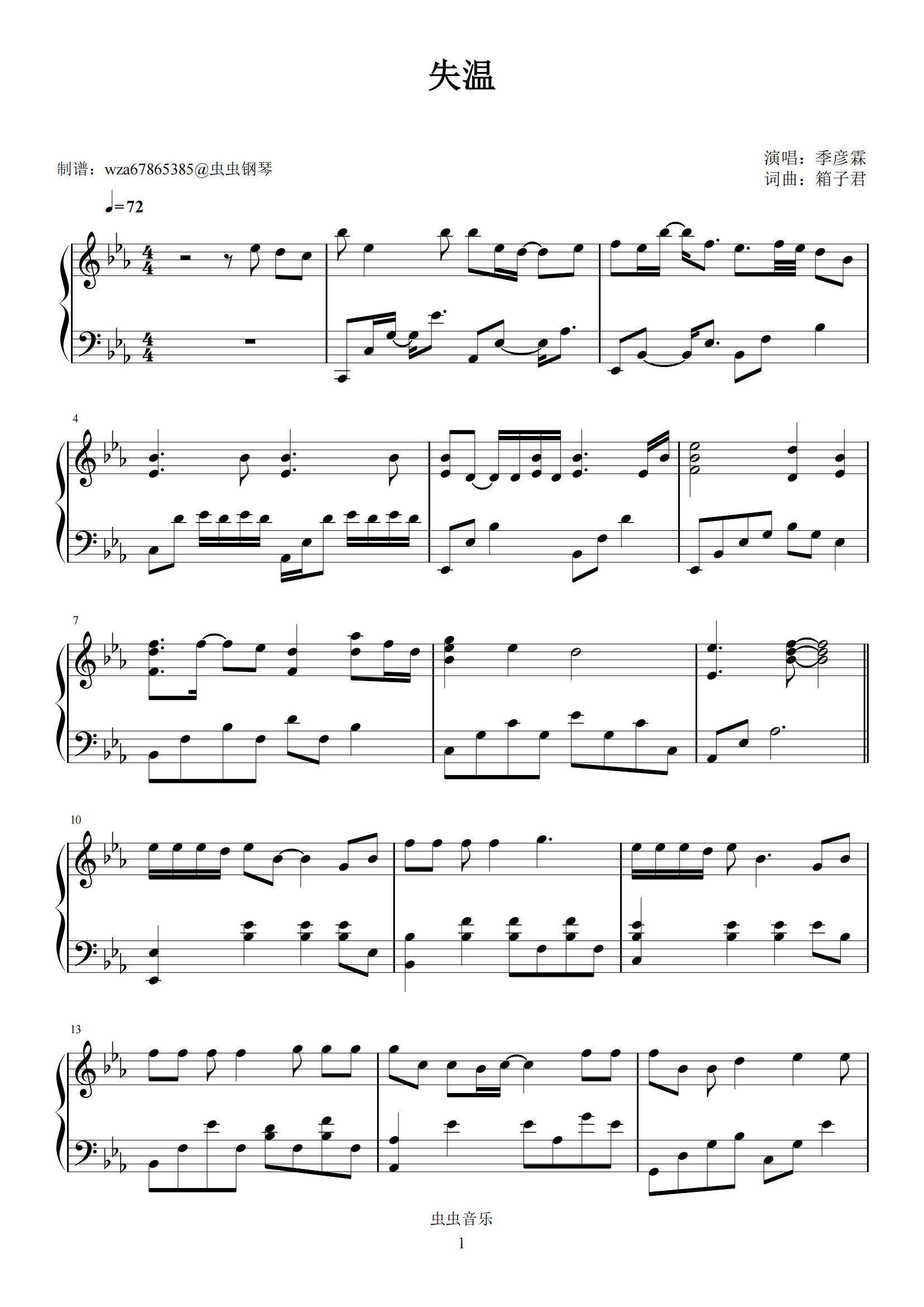 • 永不失联的爱钢琴简谱 Bb调 数字双手 饶雪漫