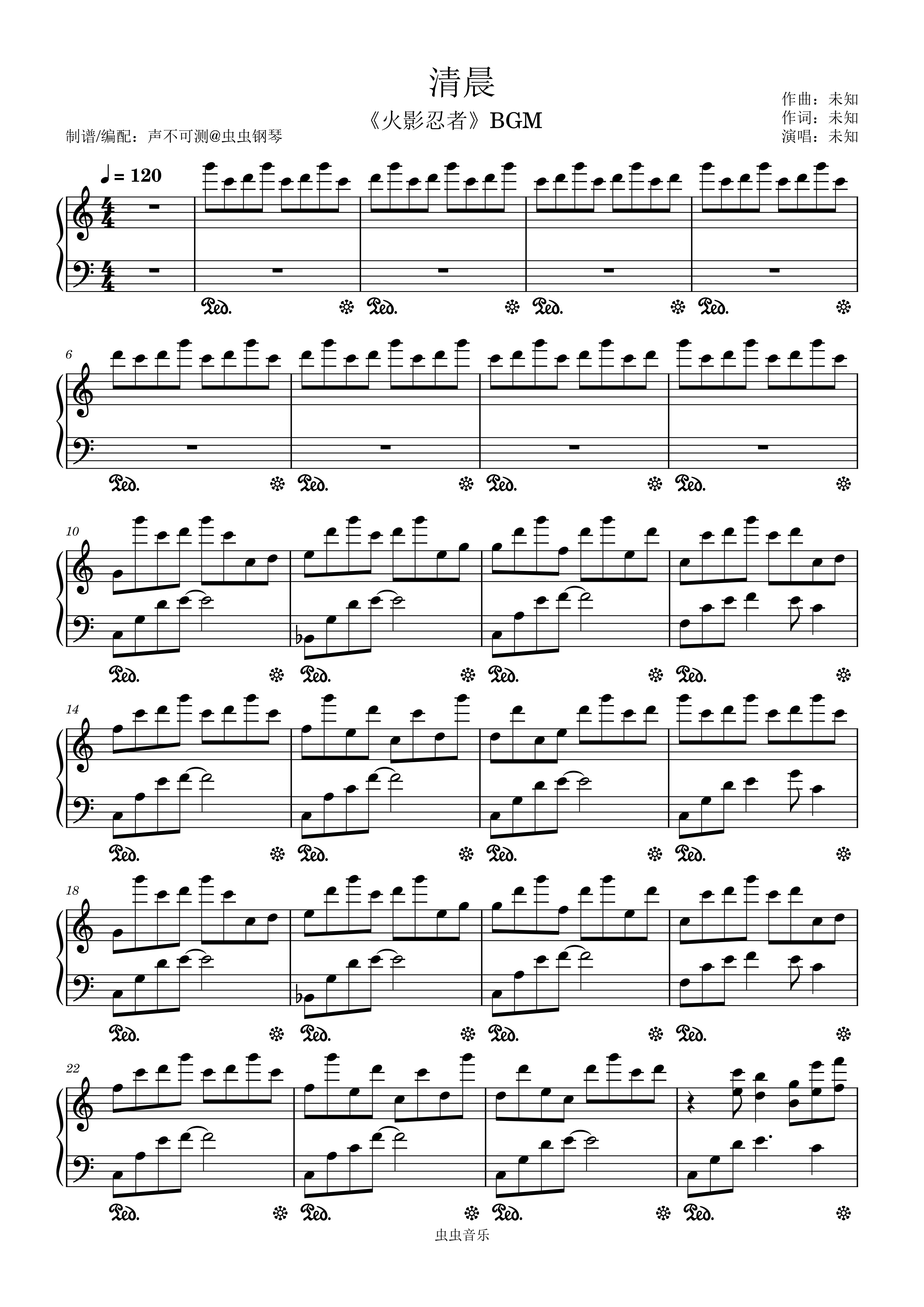 钢琴谱:清晨《火影忍者》BGM - 声不可测