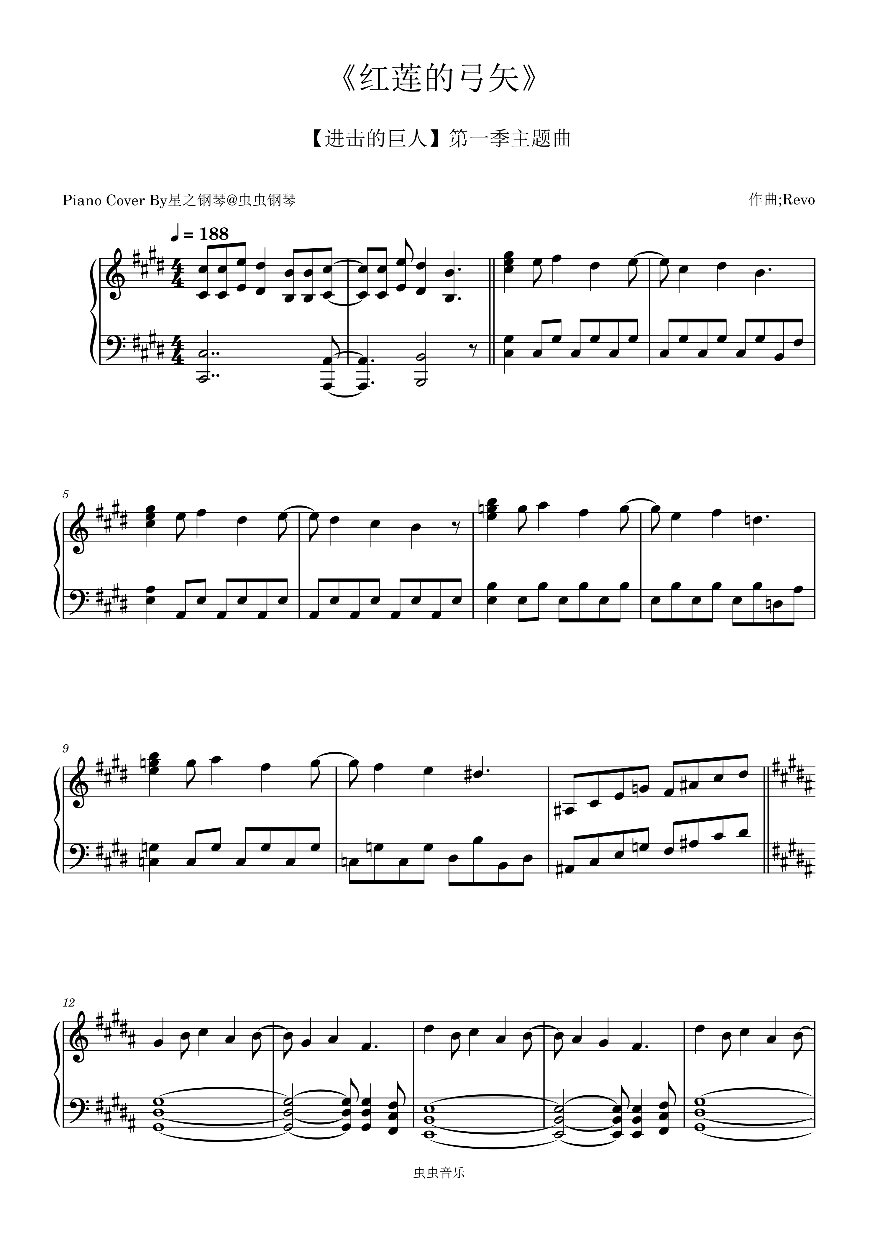 • 紅蓮の弓矢红莲之弓矢TV动画《进击的巨人》片头曲钢琴简谱 E调 数字双手