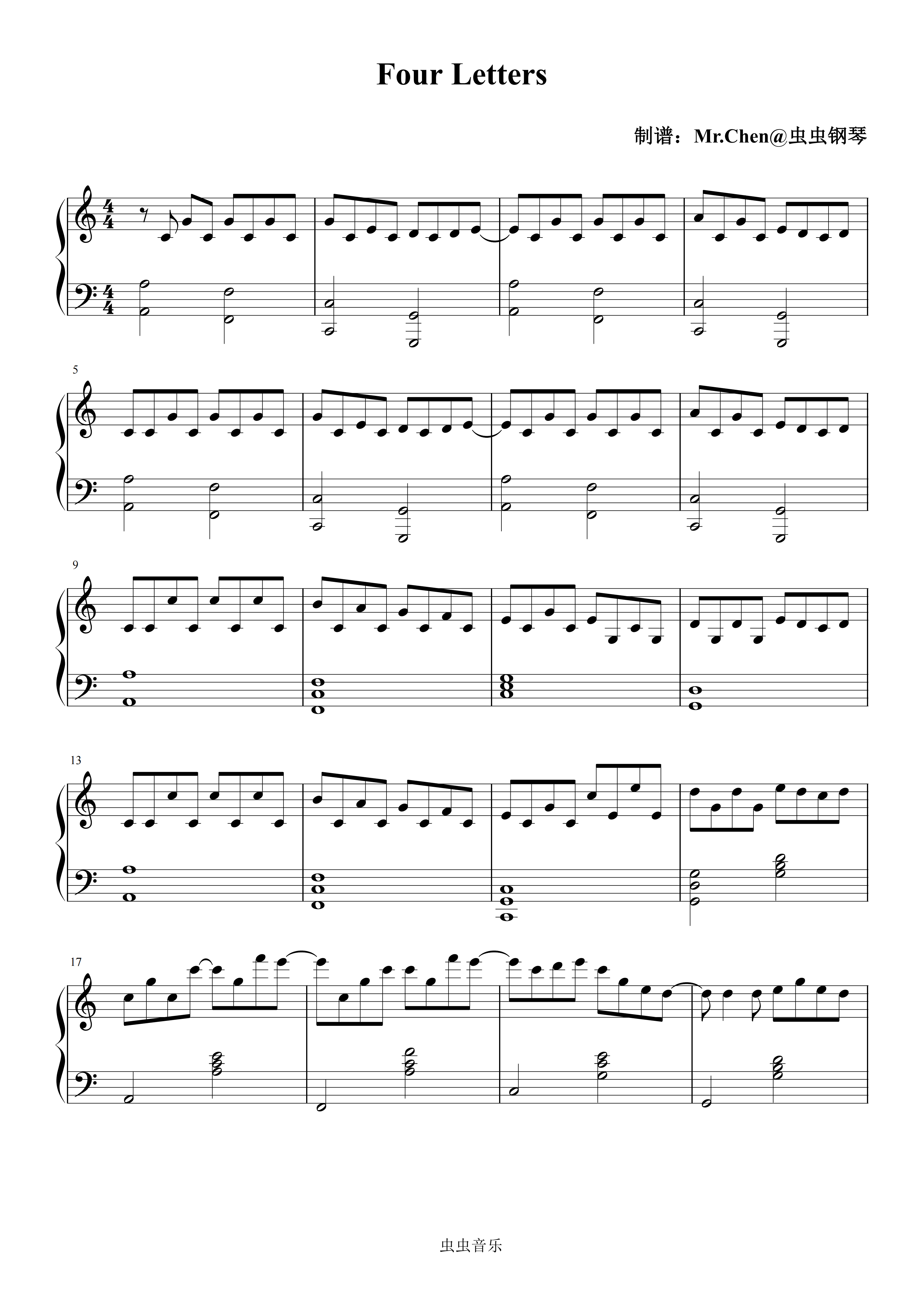 钢琴谱:Four Letters - Tony Ann 极度还原