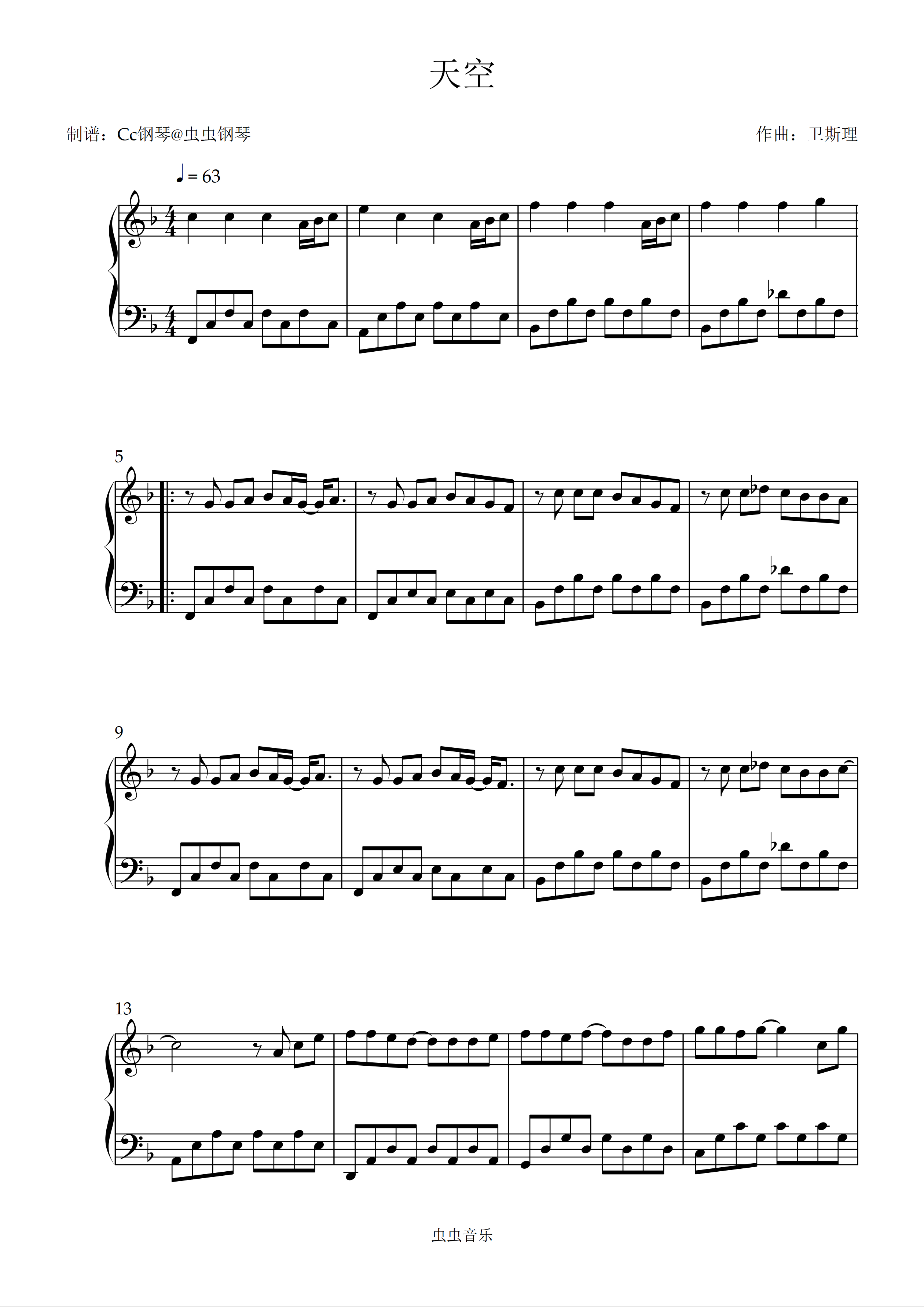 钢琴谱:天空 原调 好听易上手