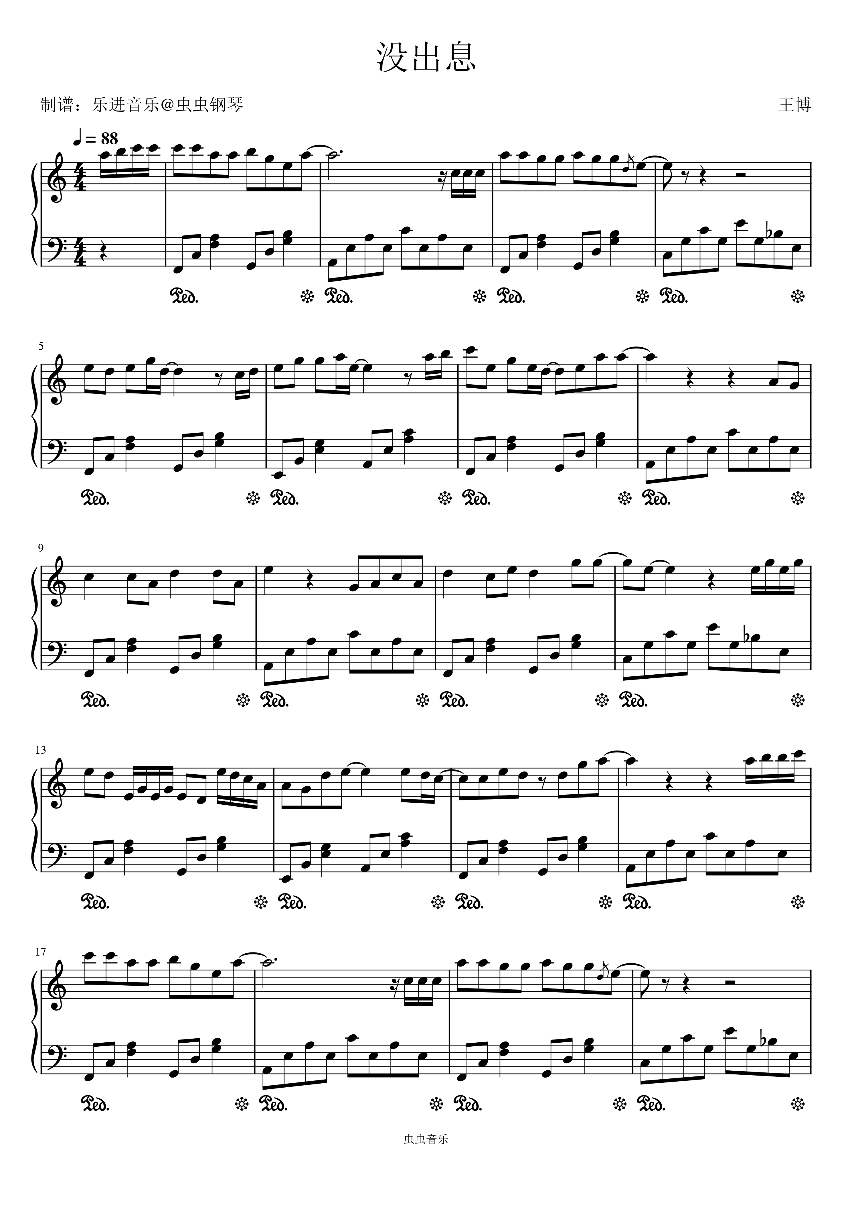 钢琴谱:《没出息》C调