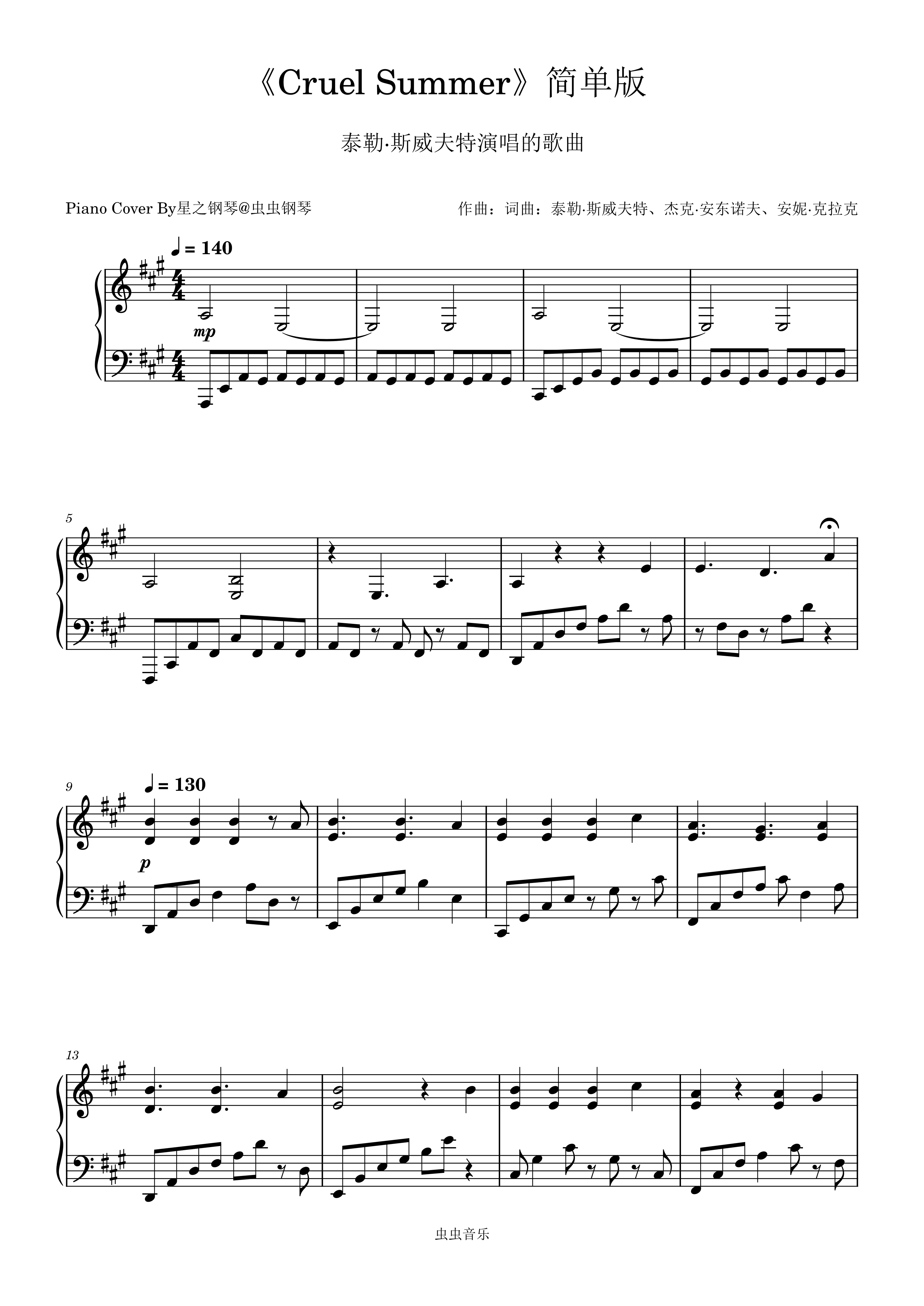 钢琴谱:【泰勒斯威夫特】《Cruel Summer》简单钢琴版~星之钢琴~