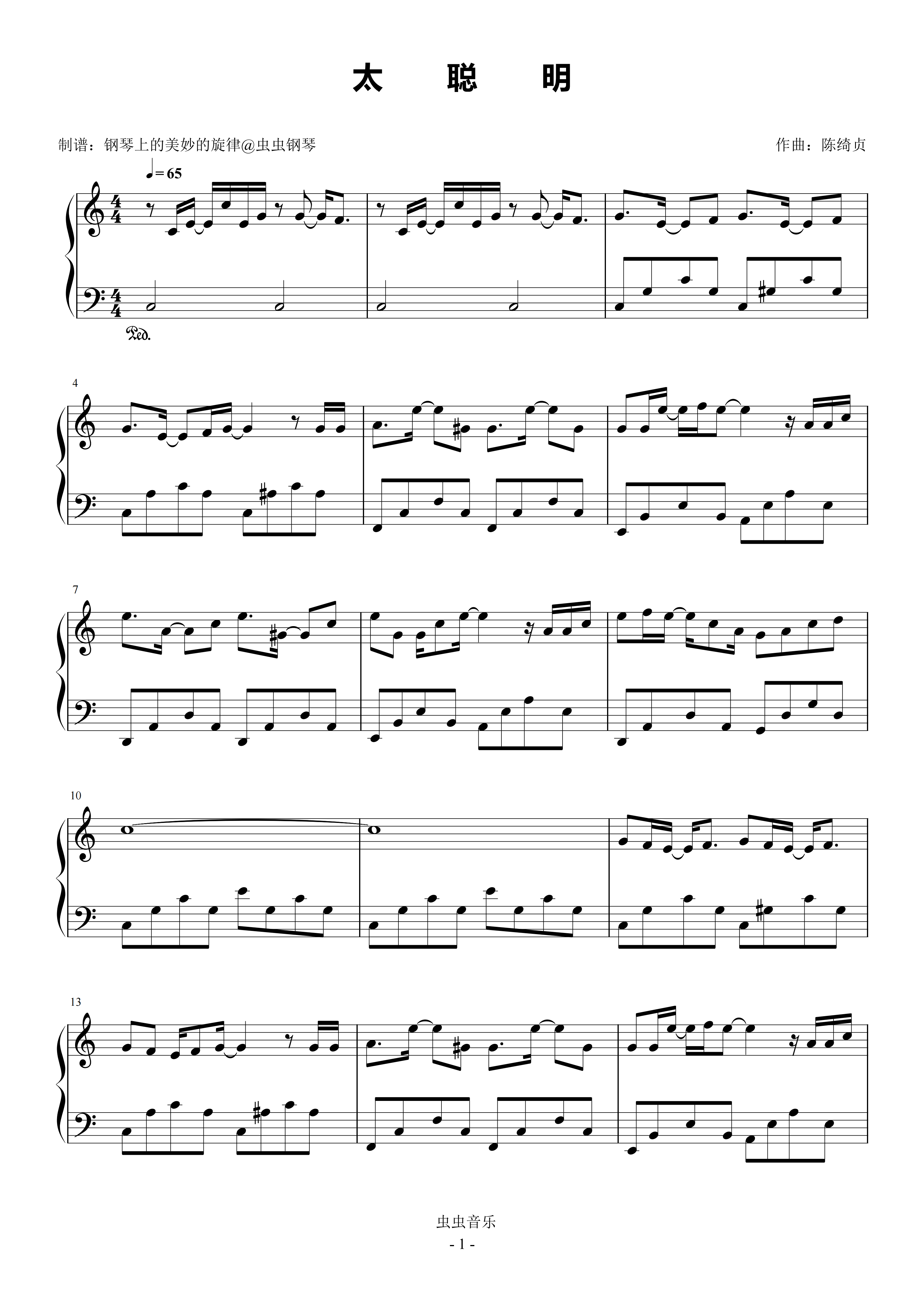 • 太聪明钢琴简谱 F调 数字双手 陈绮贞