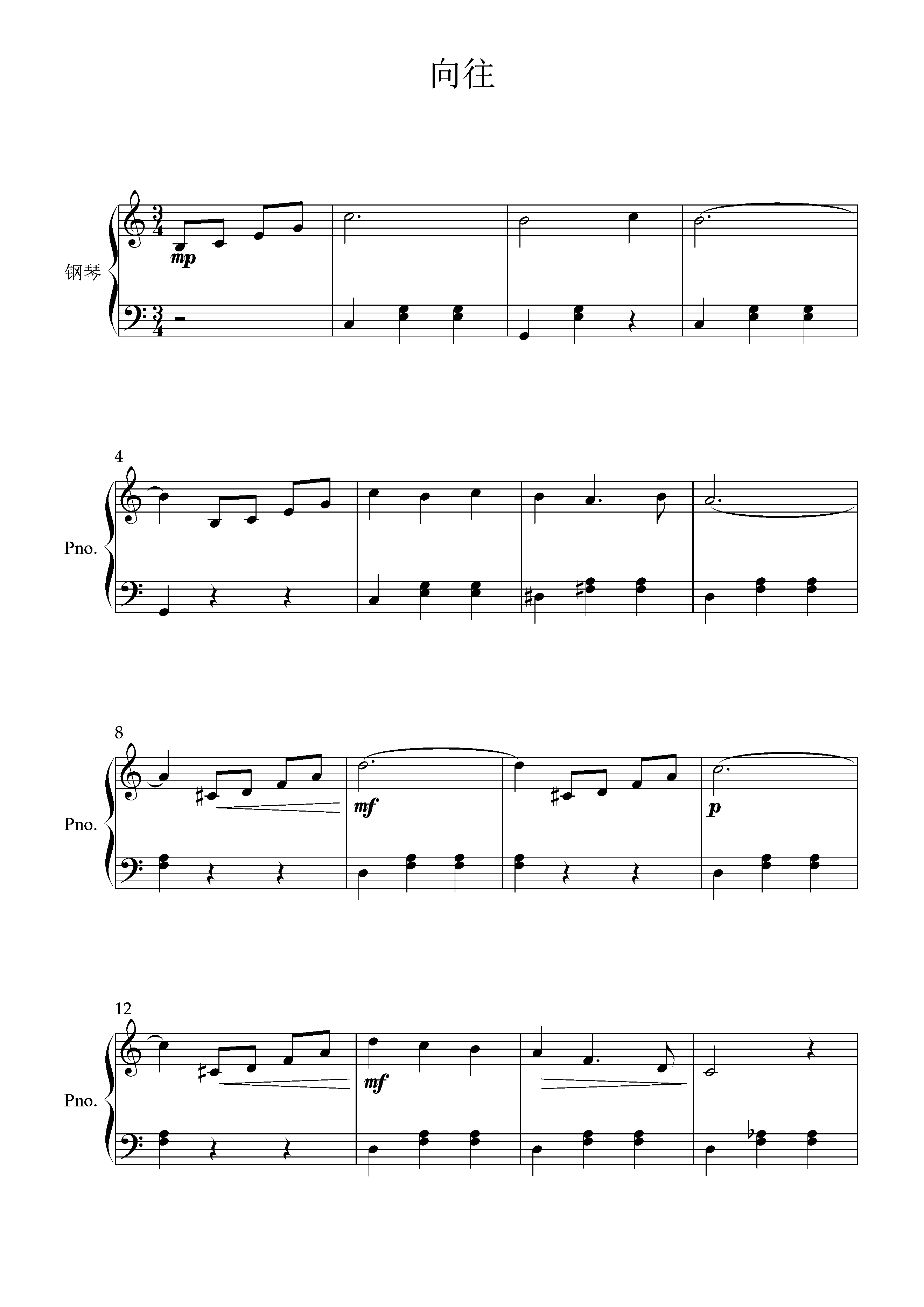 • 最向往的地方钢琴简谱 D调 数字双手 杨彤