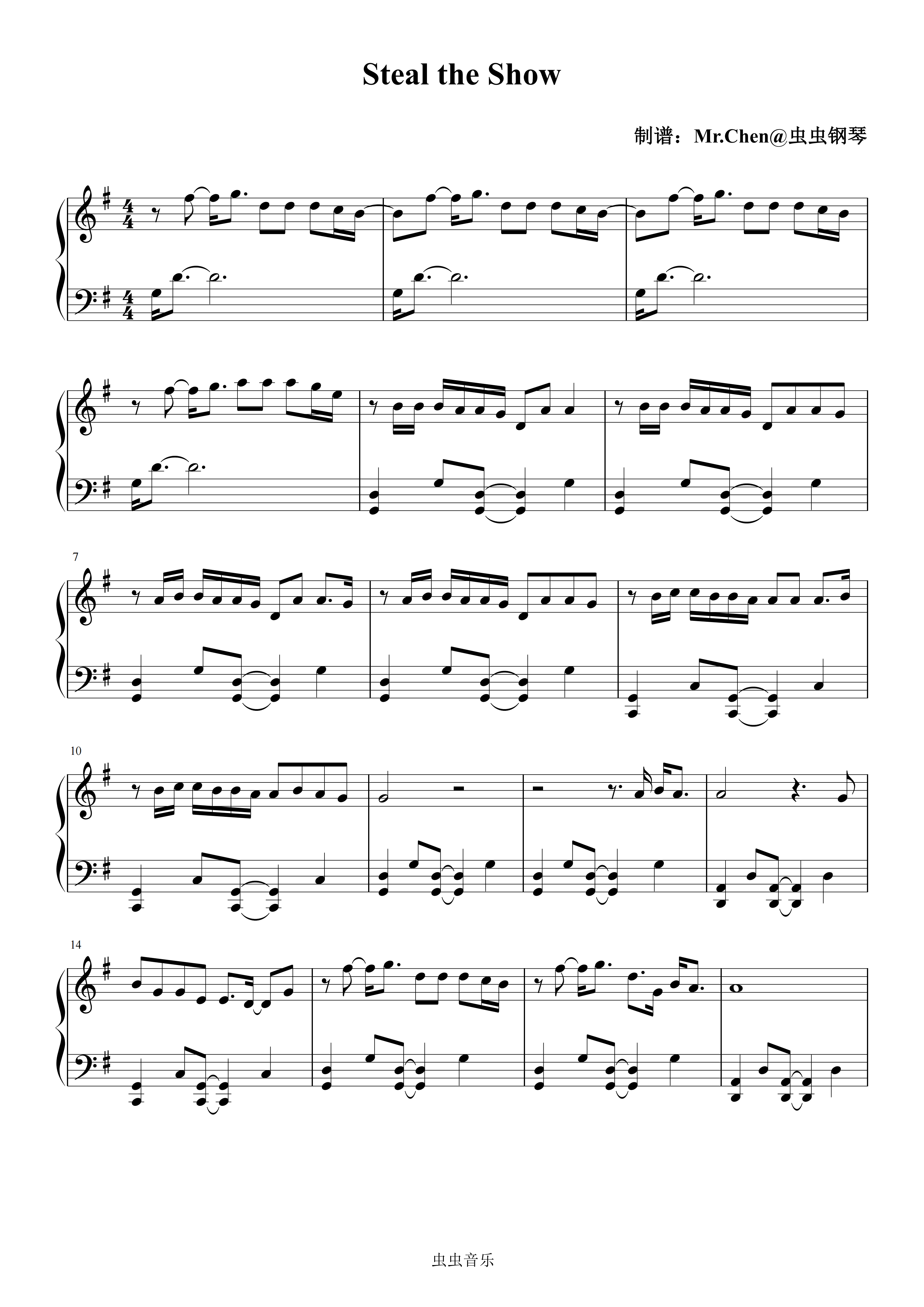 钢琴谱:Steal The Show - 动画电影《疯狂元素城》主题曲