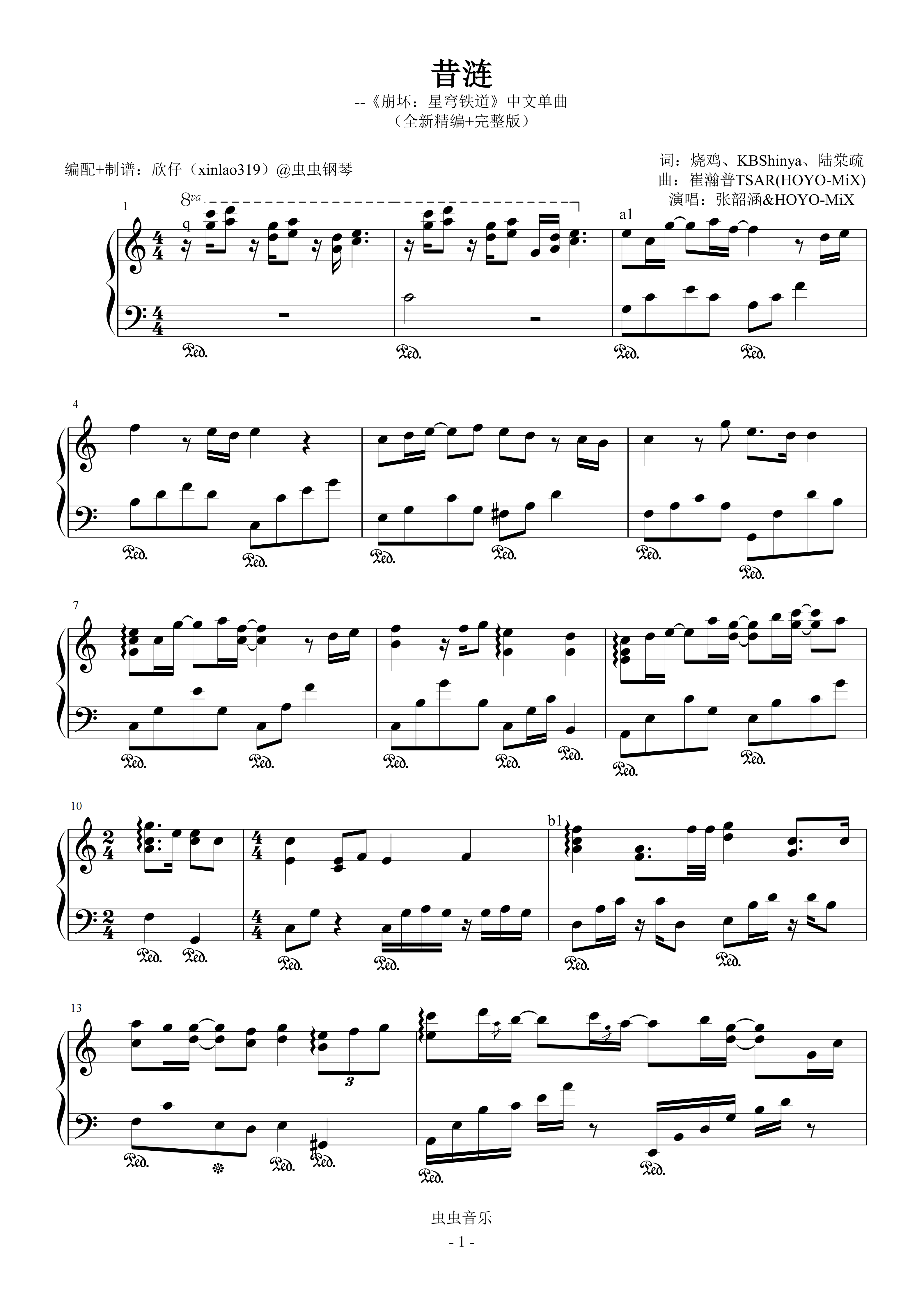 昔涟钢琴简谱 数字双手 烧鸡、KBShinya、陆棠疏