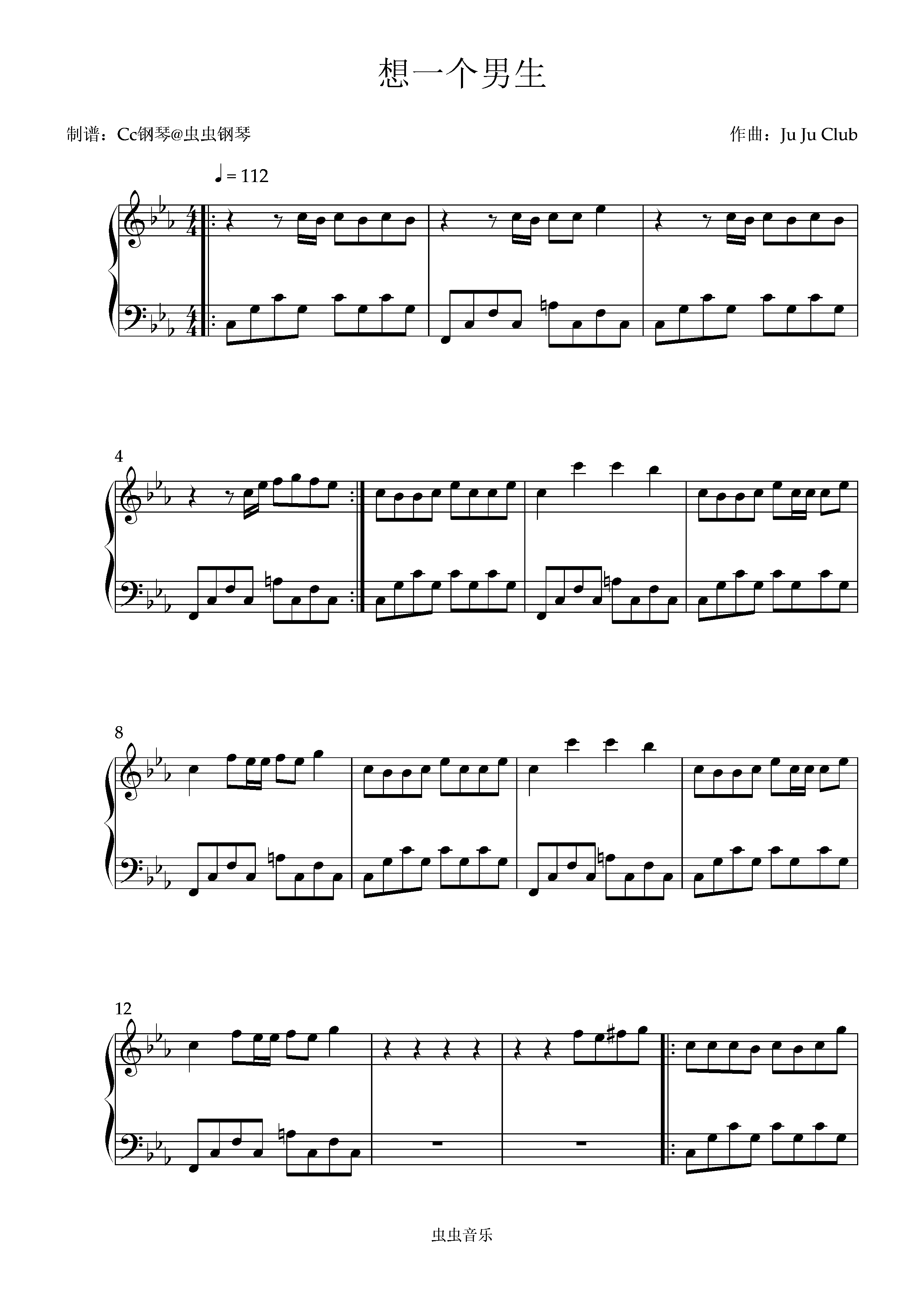 • 一个人想着一个人钢琴简谱 F调 数字双手 张简君伟