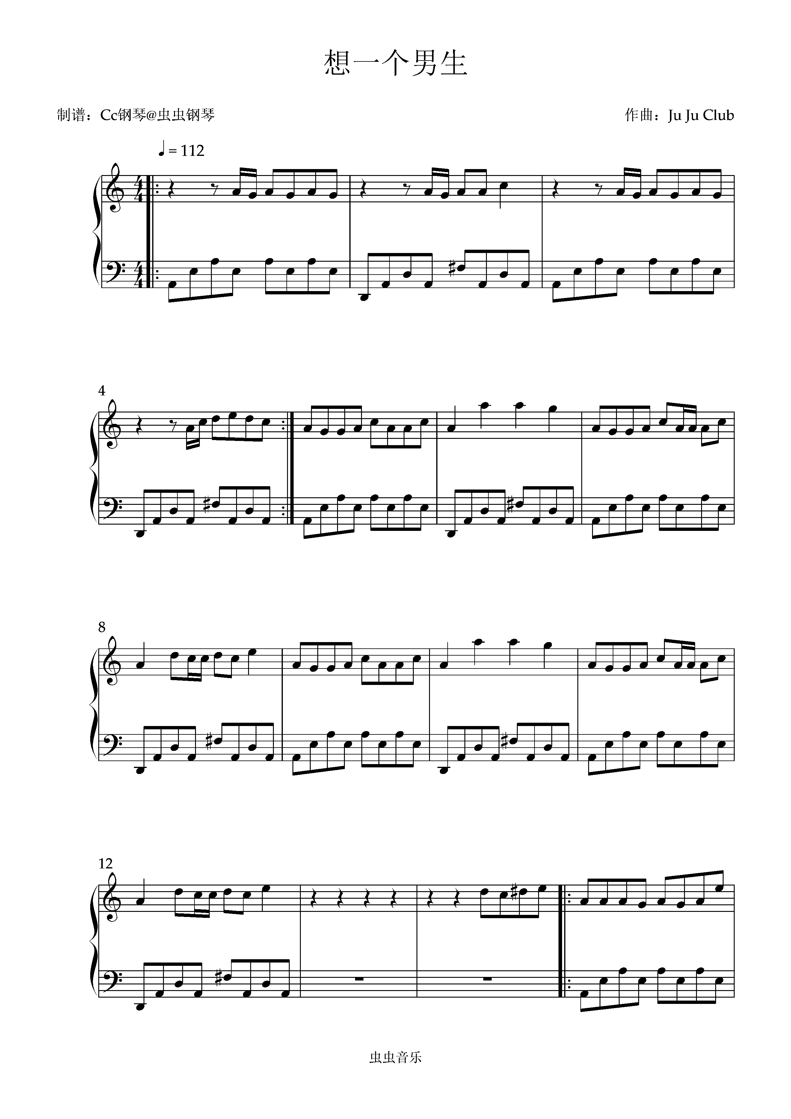 • 想着你钢琴简谱 E调 数字双手 郭顶