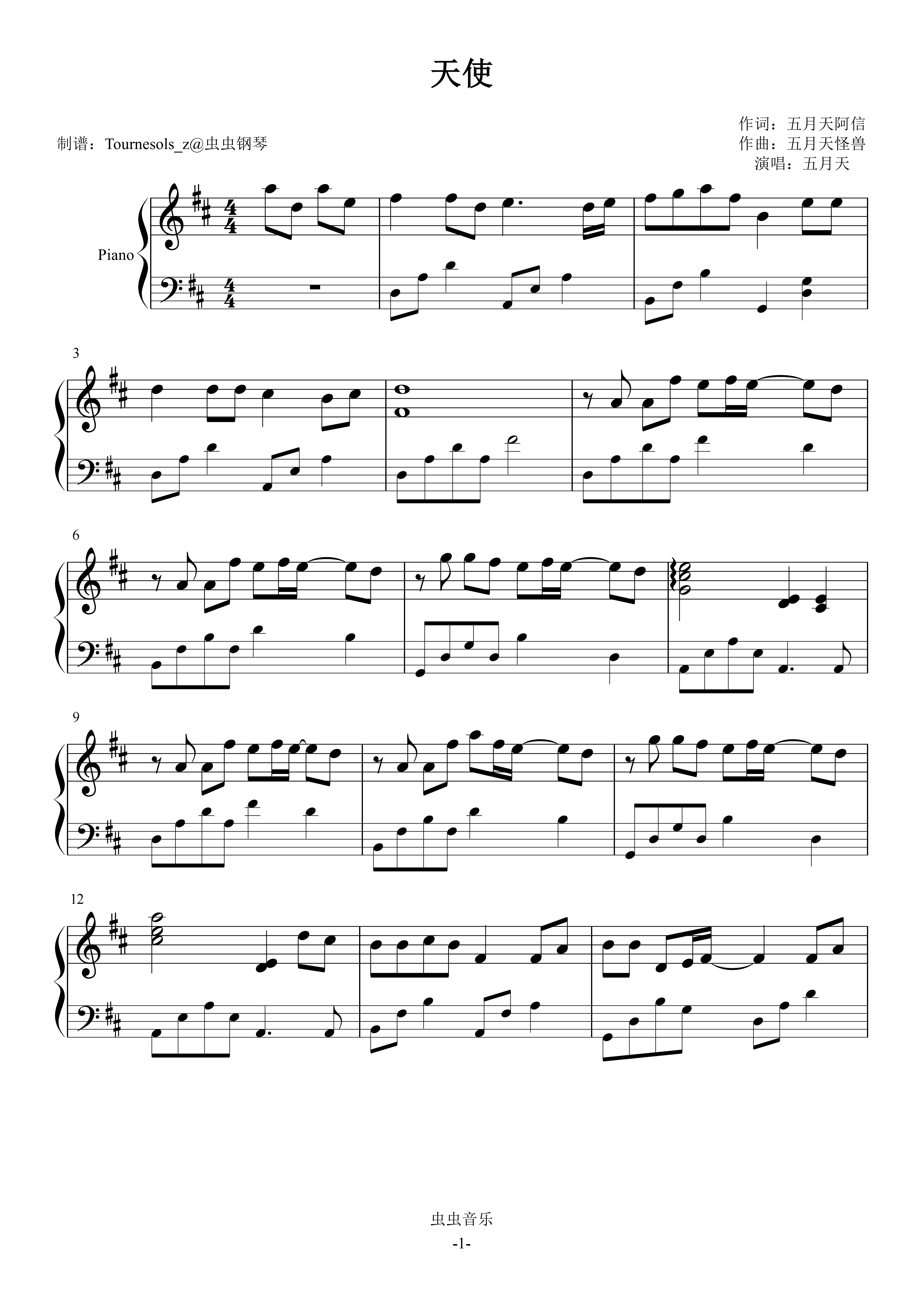• 平凡天使钢琴简谱 C#调 数字双手 邓紫棋