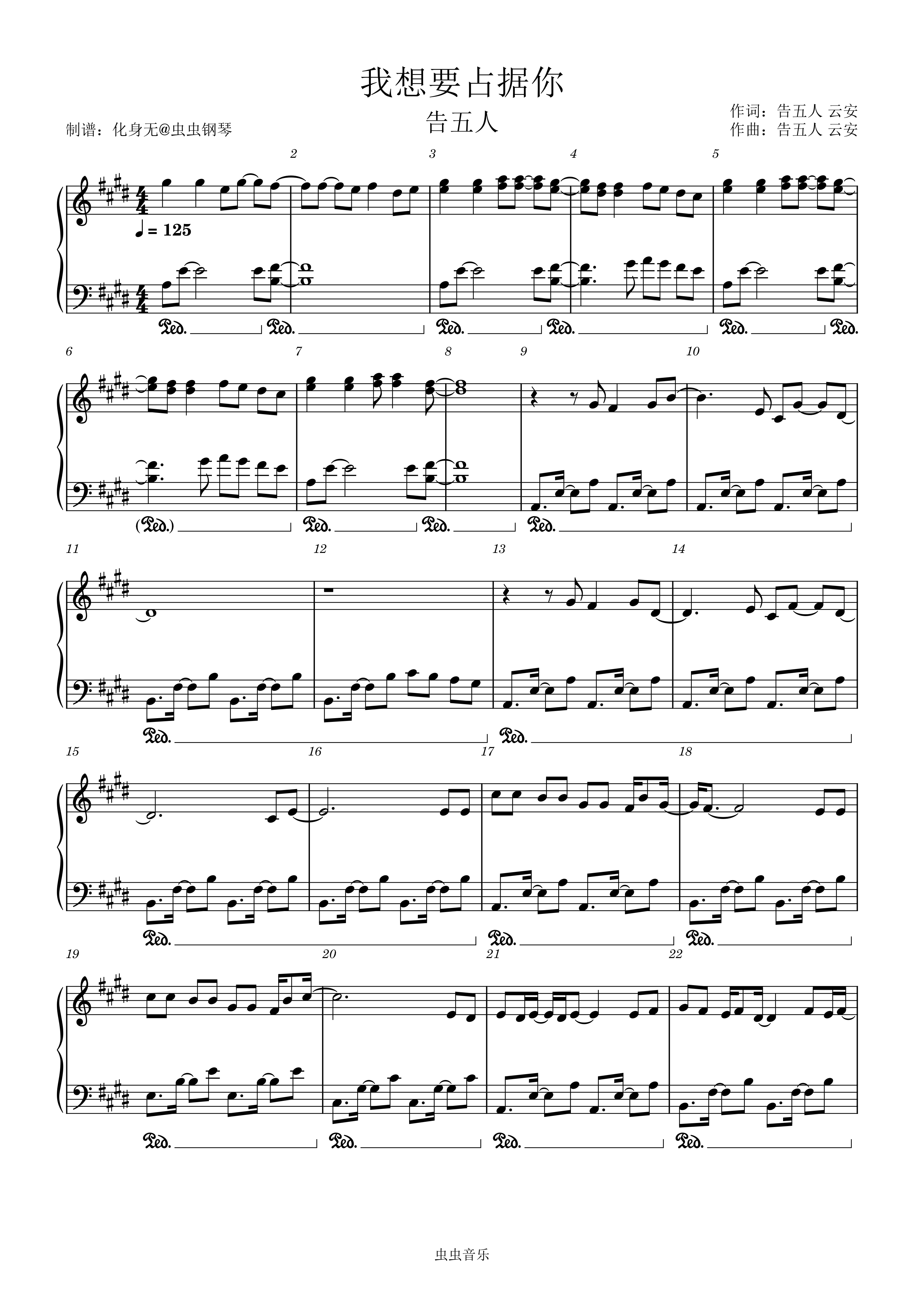 钢琴谱:我想要占据你 原调独奏版 化身无编配
